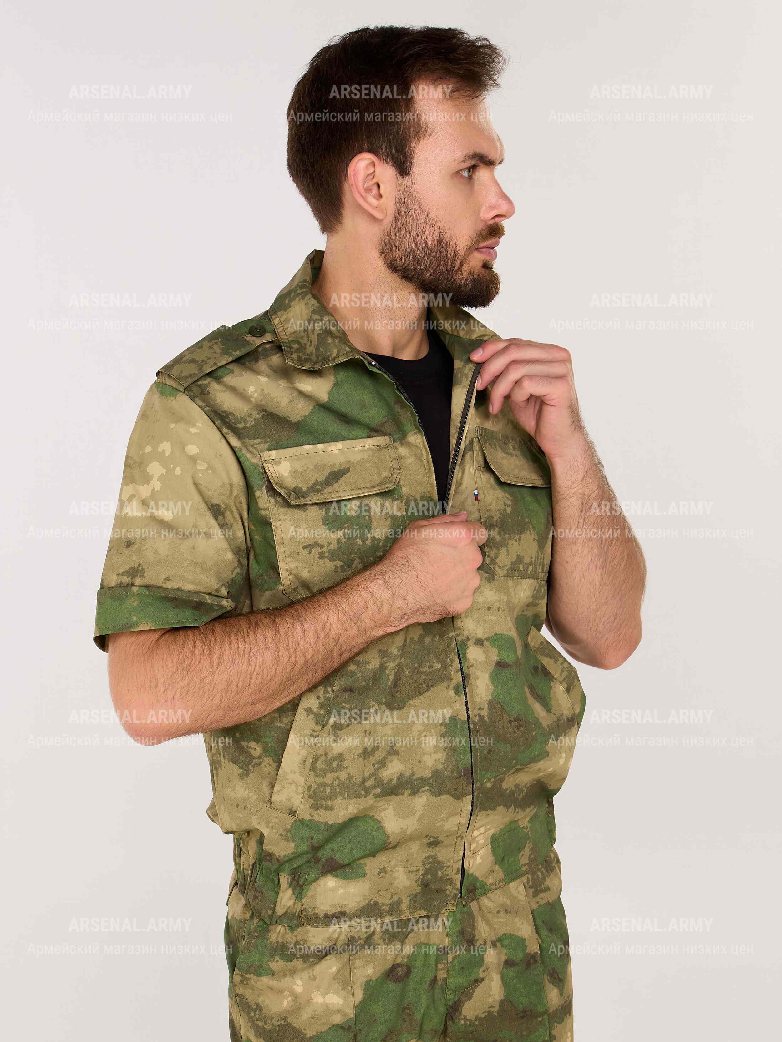 Костюм состоит из легкой рубашки на короткий рукав и форменных брюк. Оба изделия пошиты из облегченной сорочечной ткани и выполнены в камуфляжной раскраске типа «мох». Материал изготовления состоит из полиэстра и вискозы, обеспечивает хорошую вентиляцию тела, отличается прочностью и износостойкостью. Также хорошо поддается чистке и стиркам.