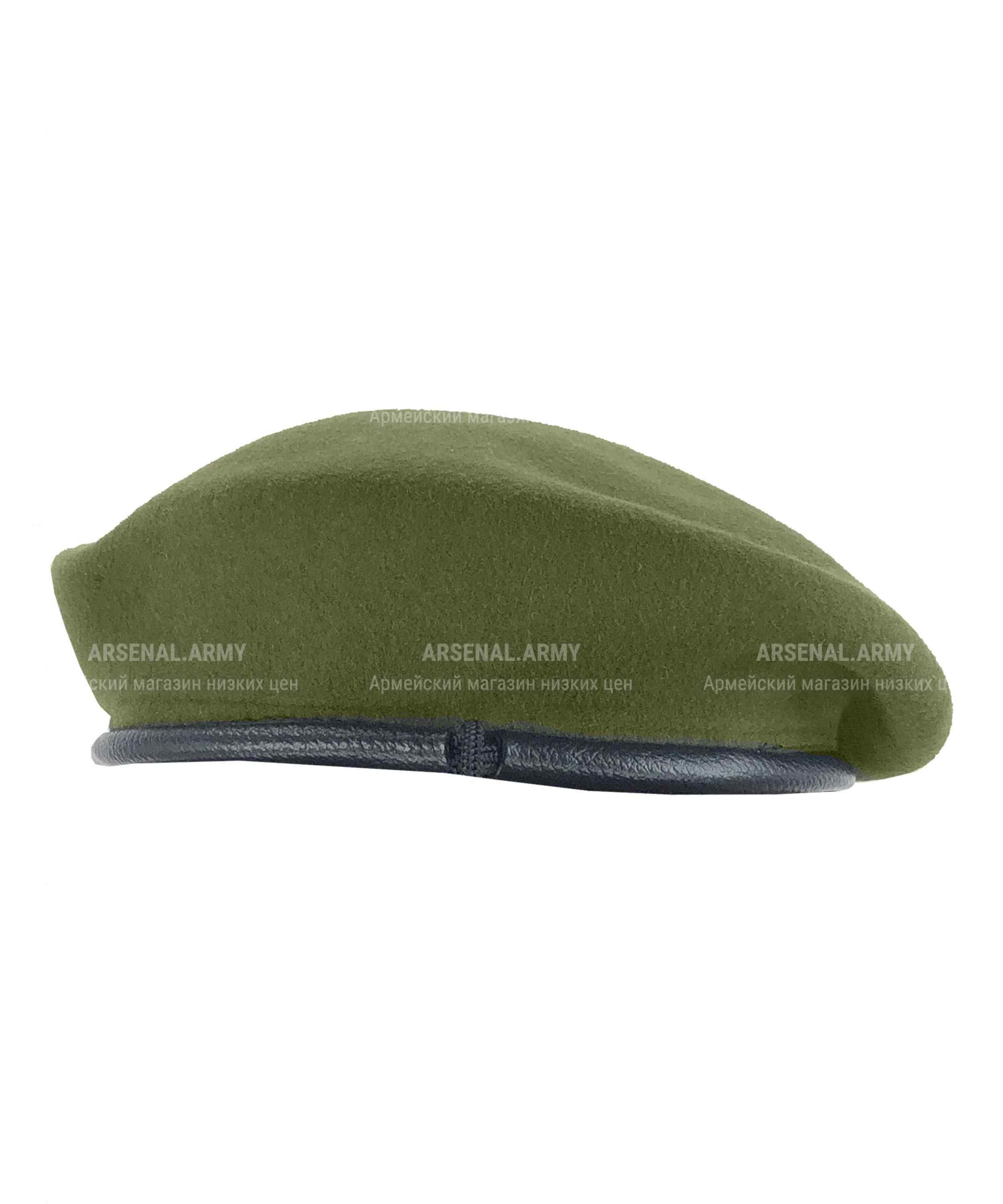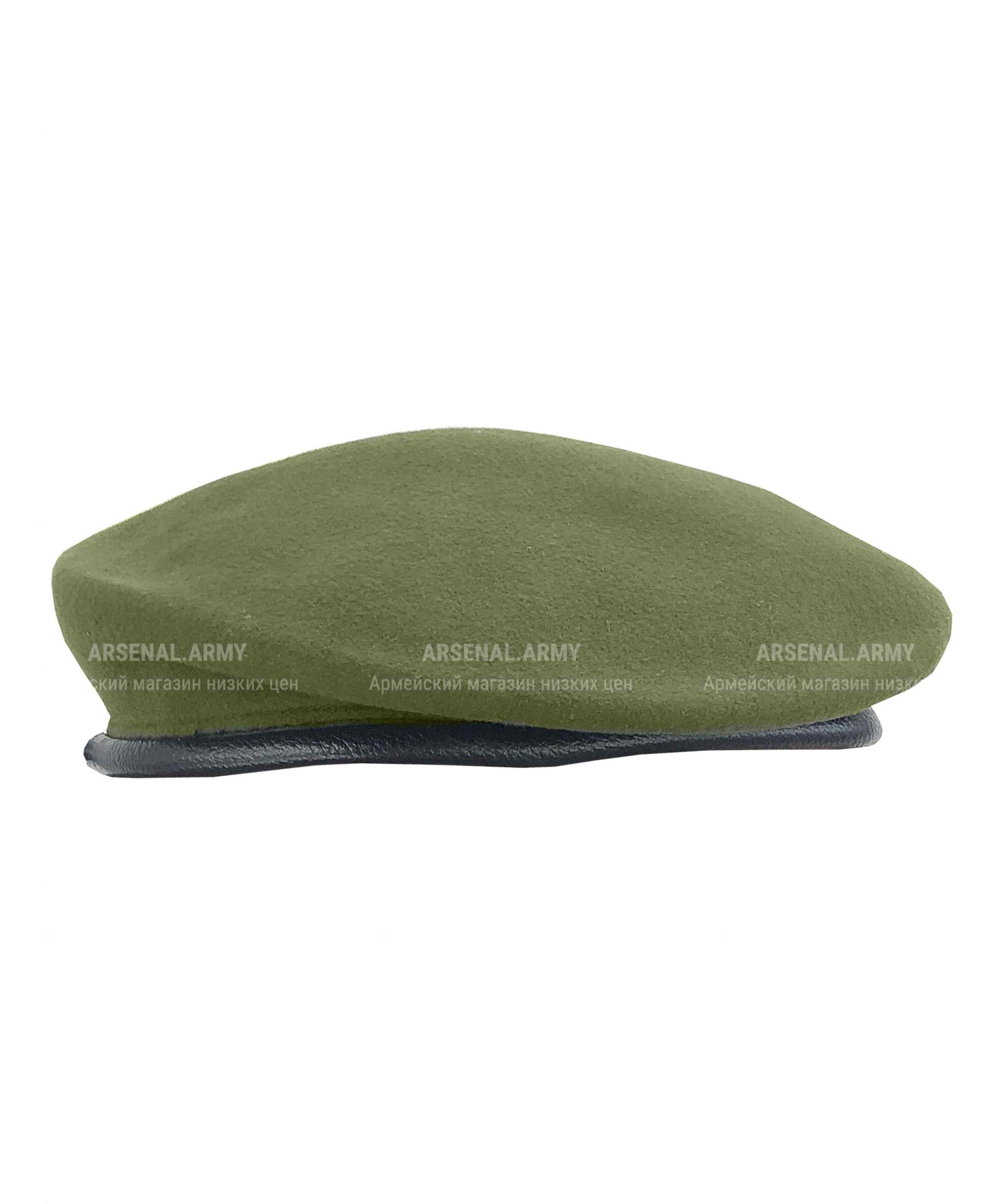 Берет бесшовный. Фиксируется по голове шнурком в задней части берета. Выполнен в стандартном дизайне. Цвет – олива. Материал пошива – натуральная шерсть с добавлением полиэстера, улучшающего эксплуатационные качества ткани. А, именно, её прочность, долговечность и стойкость при чистке, стирке. Нижний кант берета прошит полоской натуральной кожи для защиты от износа.