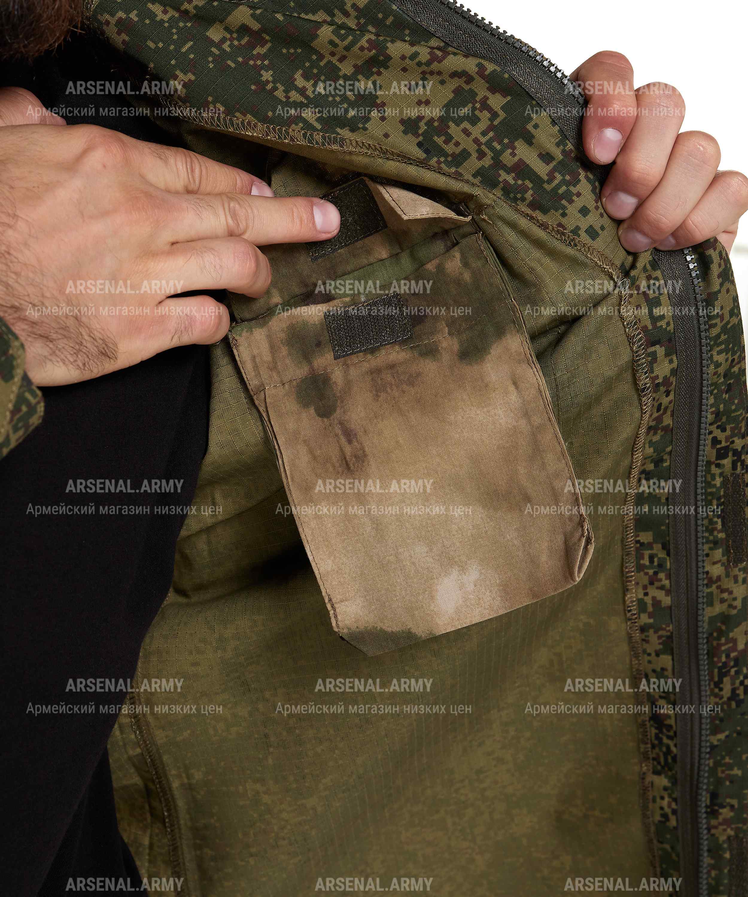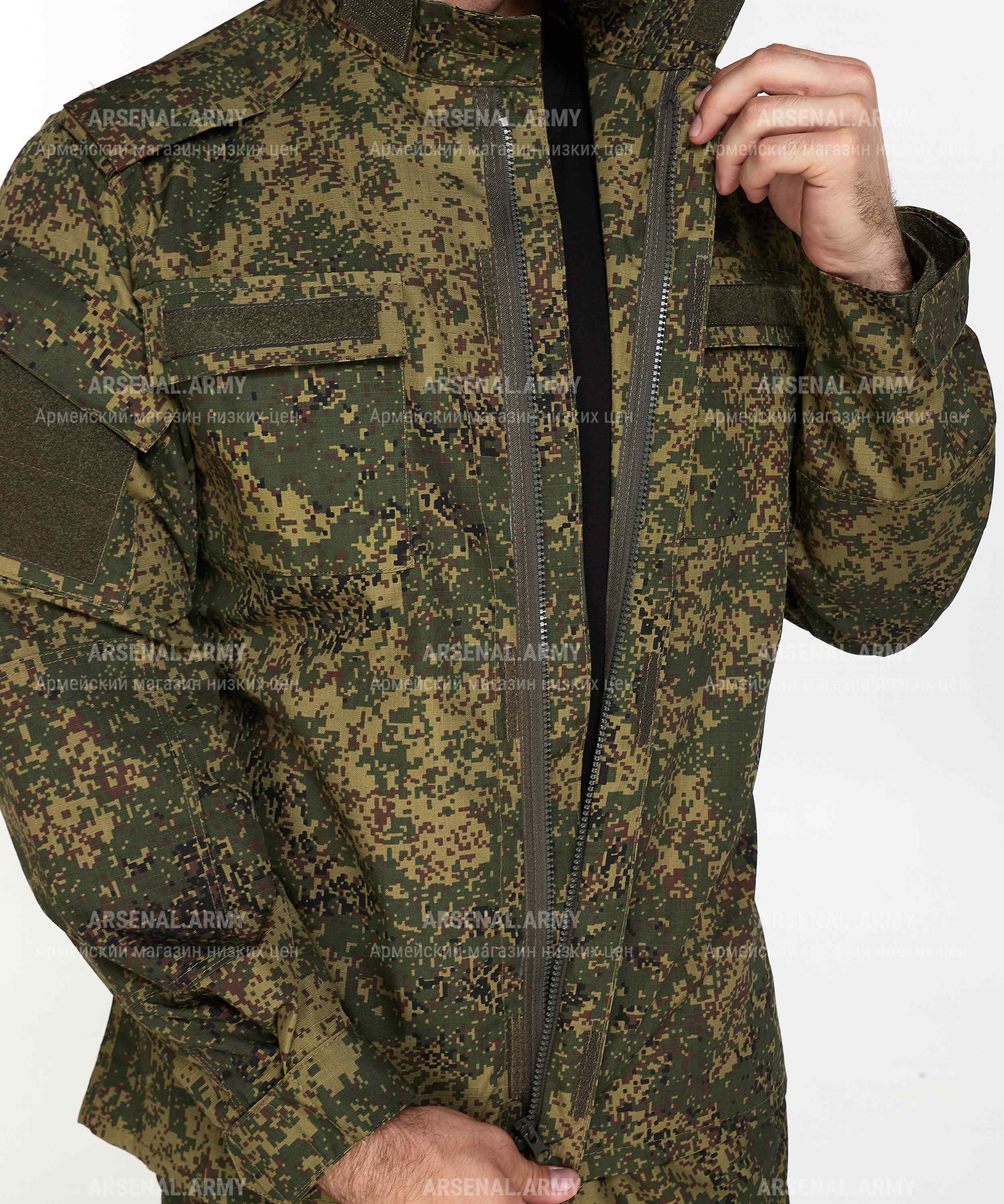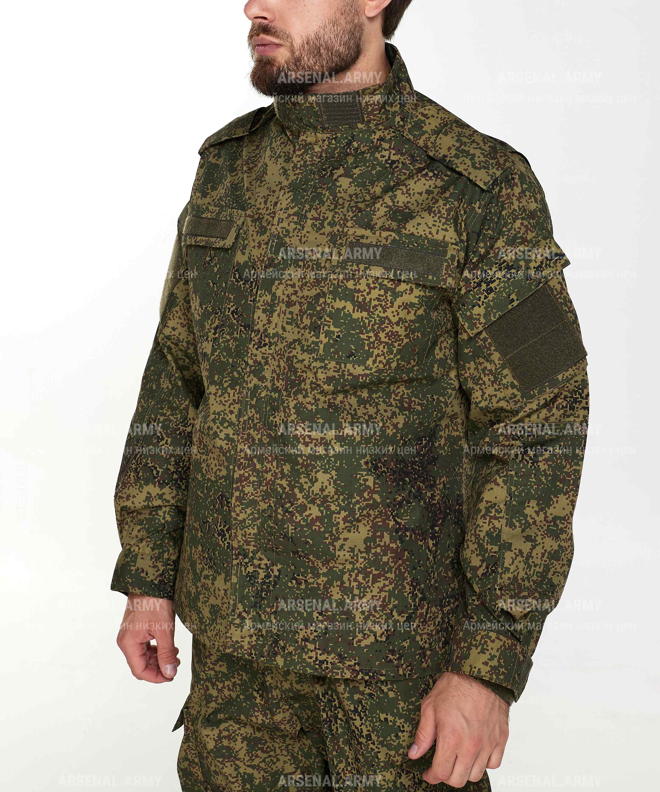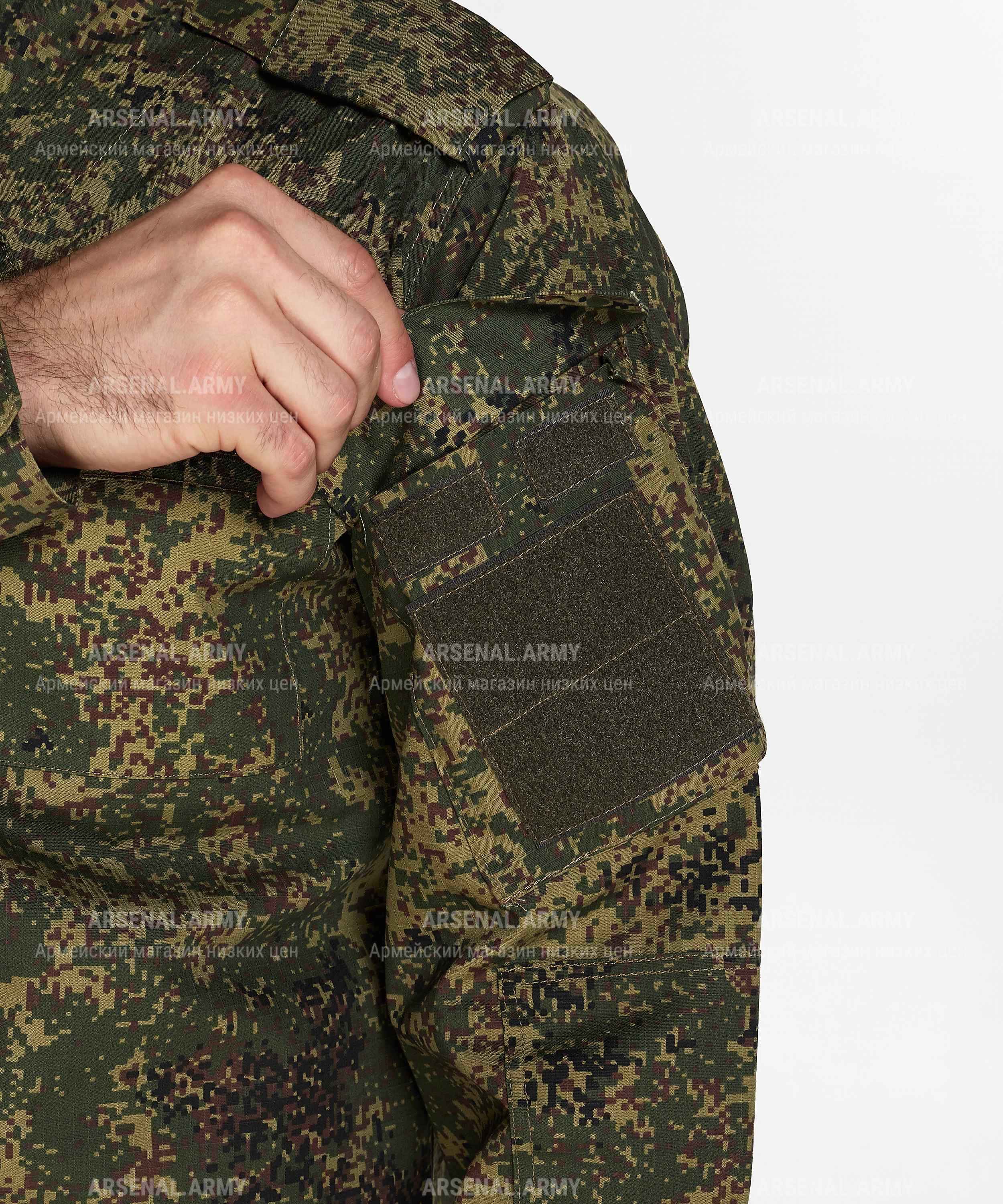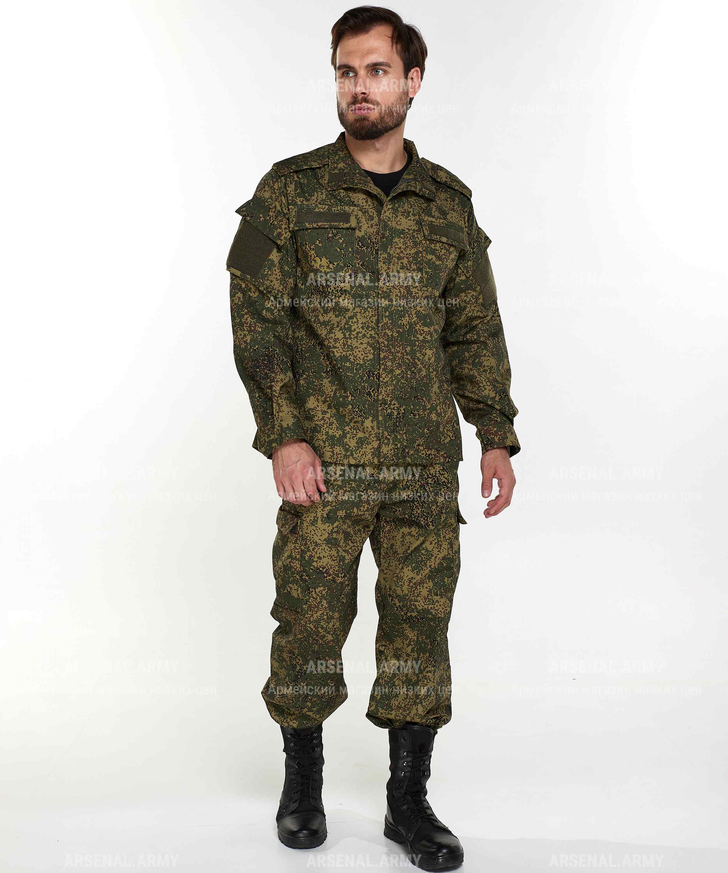 ООО «Арсенал-Пром» представляет Вашему вниманию костюм армейский нового образца в расцветке «пиксель» (на липе). Костюм выполнен из ткани особой прочности, что гарантирует износостойкость и долговечность. Хлопковая составляющая делает костюм легким и приятным к телу в теплое время года.