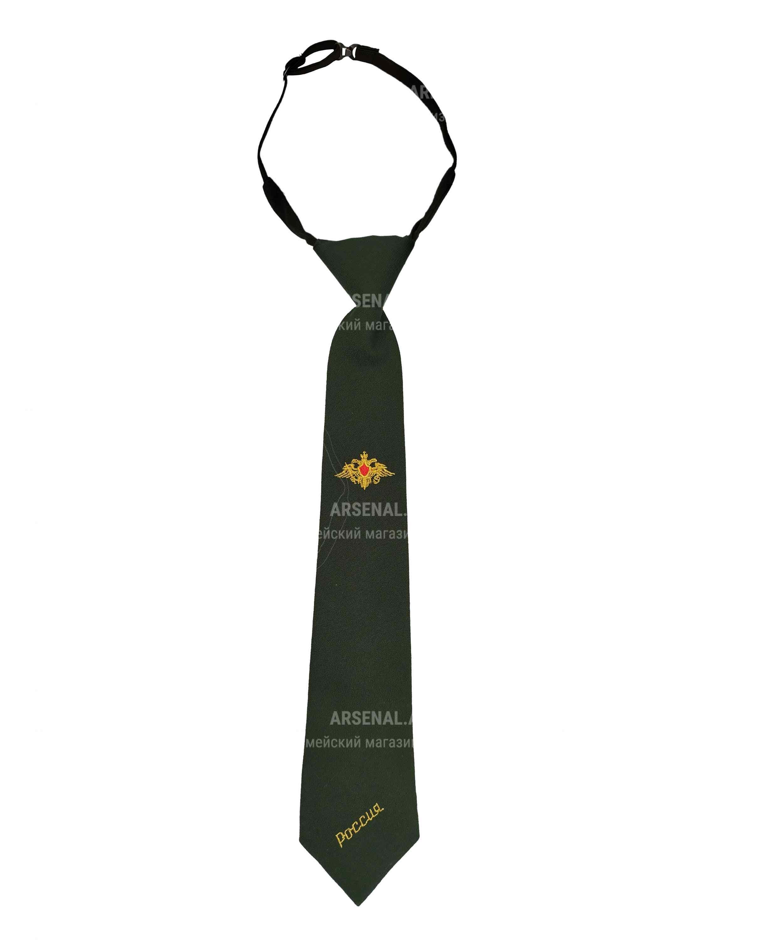 Форменный галстук оливкового цвета с вышитой ведомственной символикой — официальный аксессуар для повседневной и парадной формы одежды военнослужащих Российской армии (РА). Изделие соответствует требованиям к форменному обмундированию и подходит для ношения с рубашками оливкового, белого и других установленных цветов.