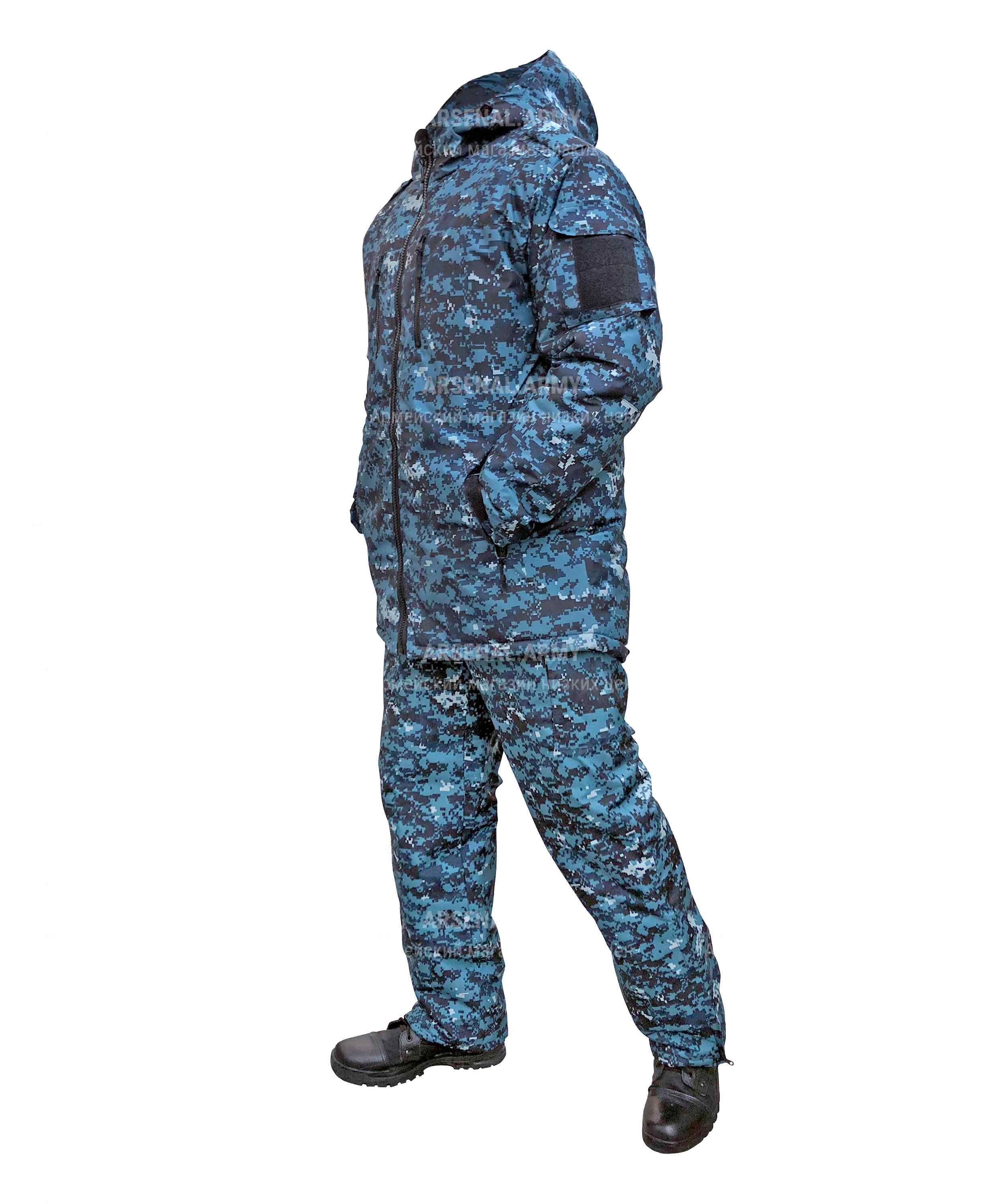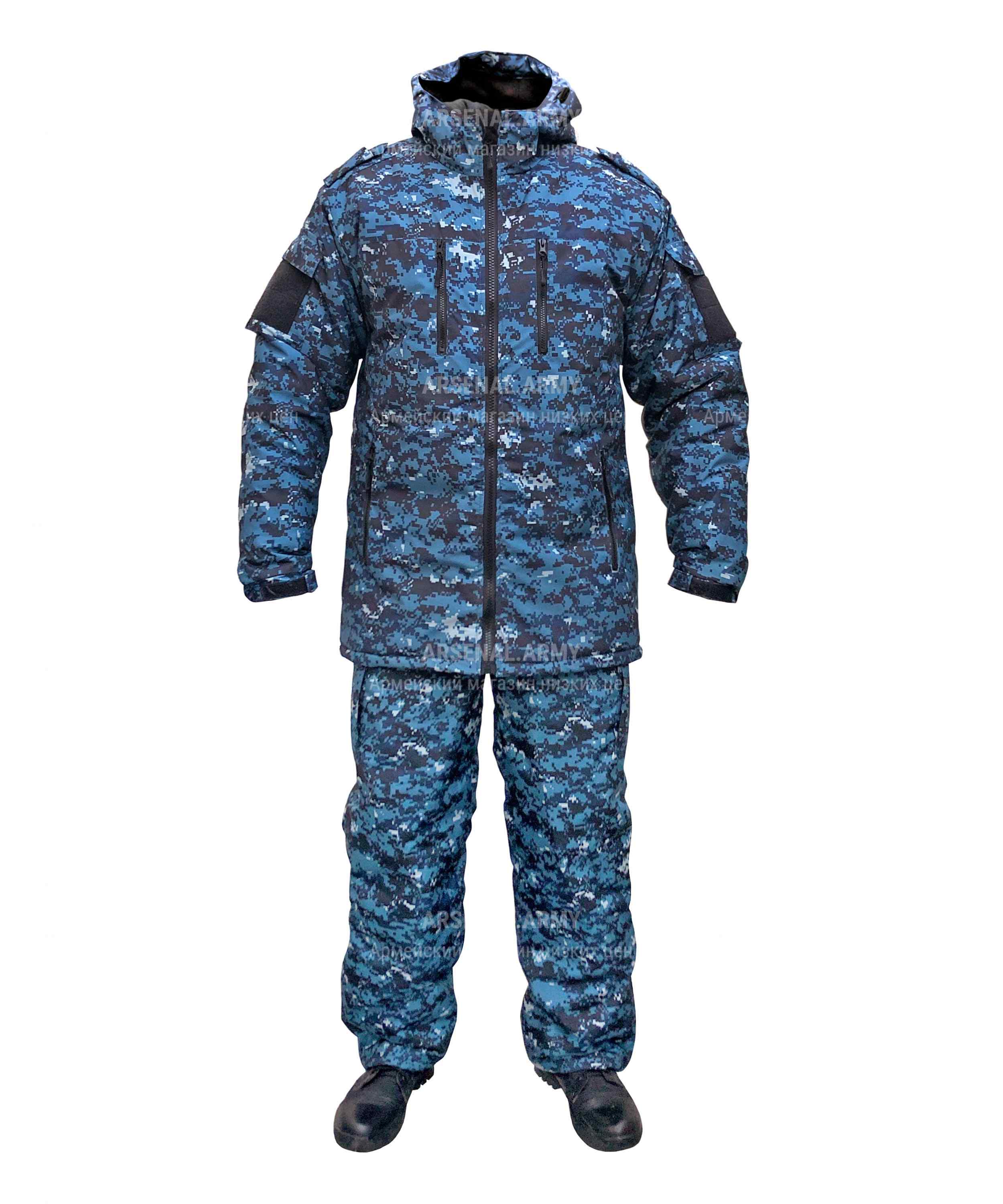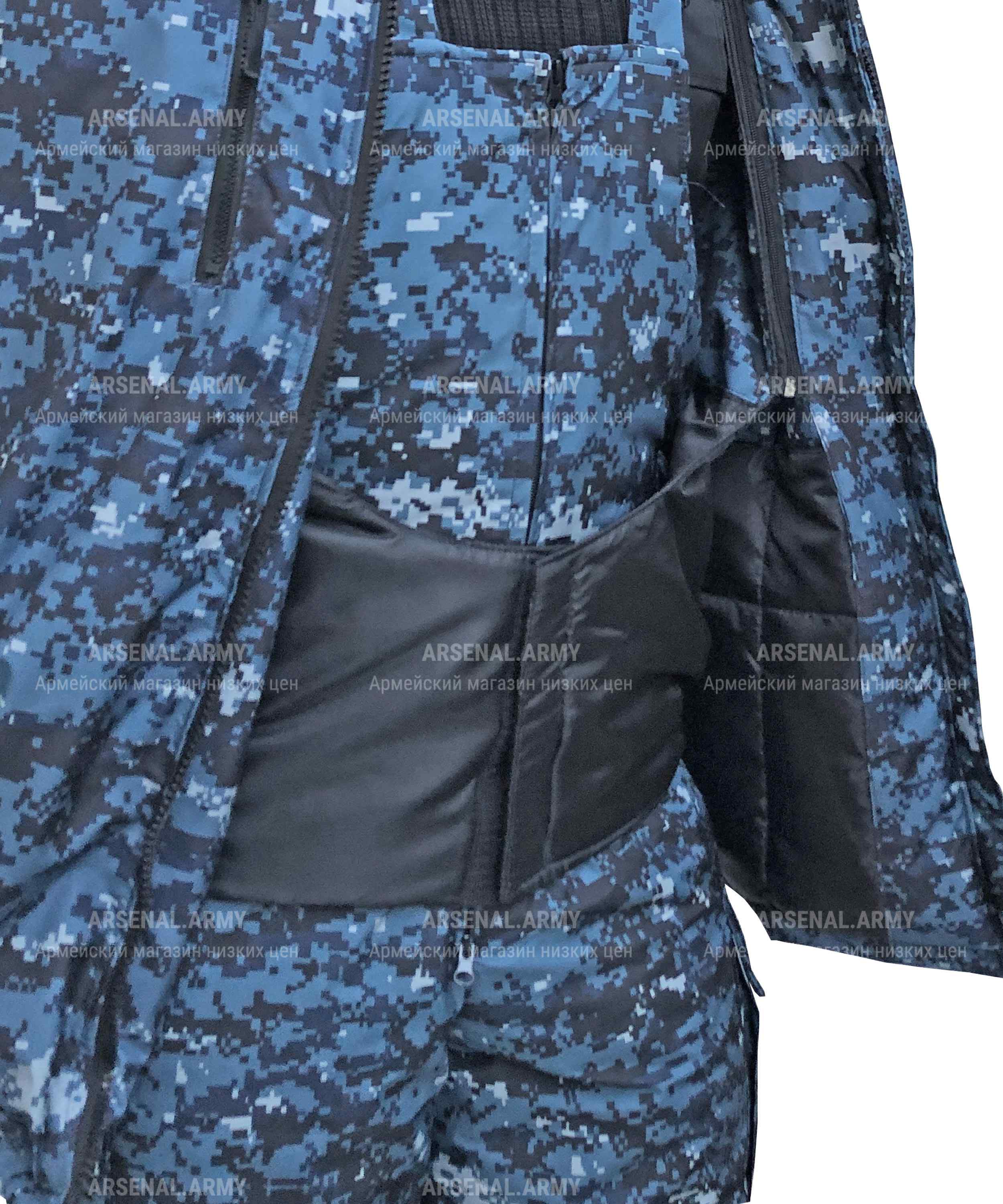 Куртка выполнена в расцветке "цифра" и имеет утепление синтепоном и флисом. Она закрывается на молнию и оснащена не отстегивающимся капюшоном, который можно утянуть для дополнительной защиты от ветра и снега. На плечах пришиты хлястики под фальшпогоны. На рукавах имеется липучка для крепления шевронов. Манжеты можно утянуть с помощью липучек, чтобы предотвратить попадание холода и снега. Куртка оснащена четырьмя передними карманами на молнии, а также дополнительным карманом на рукаве, закрывающимся на липучке. Подстежка на молнии имеет фиксацию (утяжку) на поясе и два кармана на молнии и липучке, чтобы сохранить ваши вещи в безопасности.