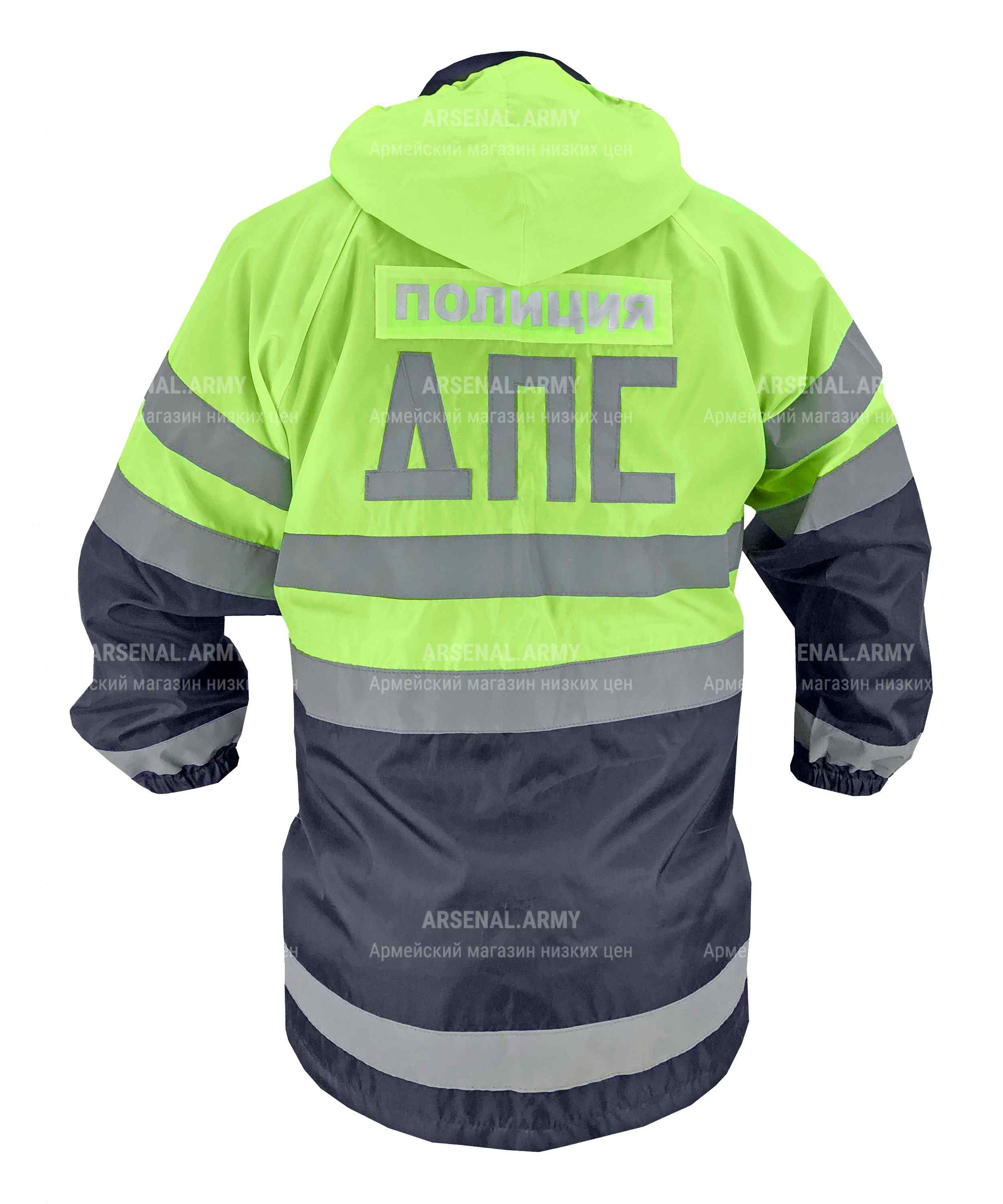 Сигнальная куртка носится поверх зимней куртки ДПС и пошита в соответствии с ТУ для данного вида изделий.