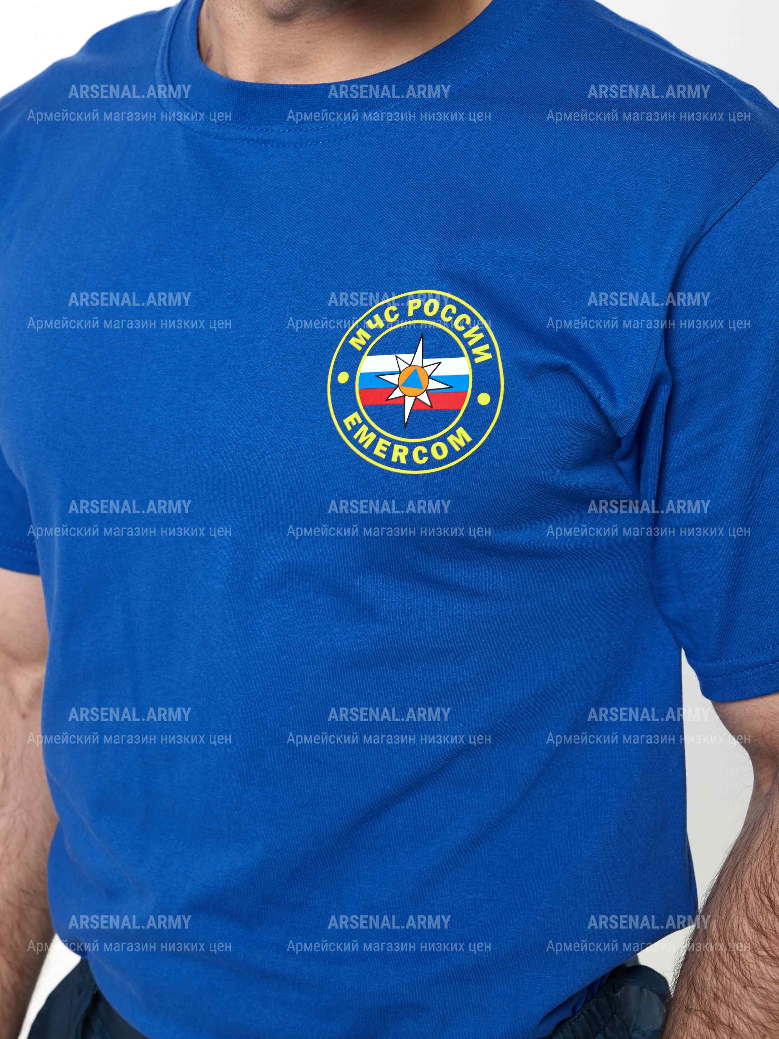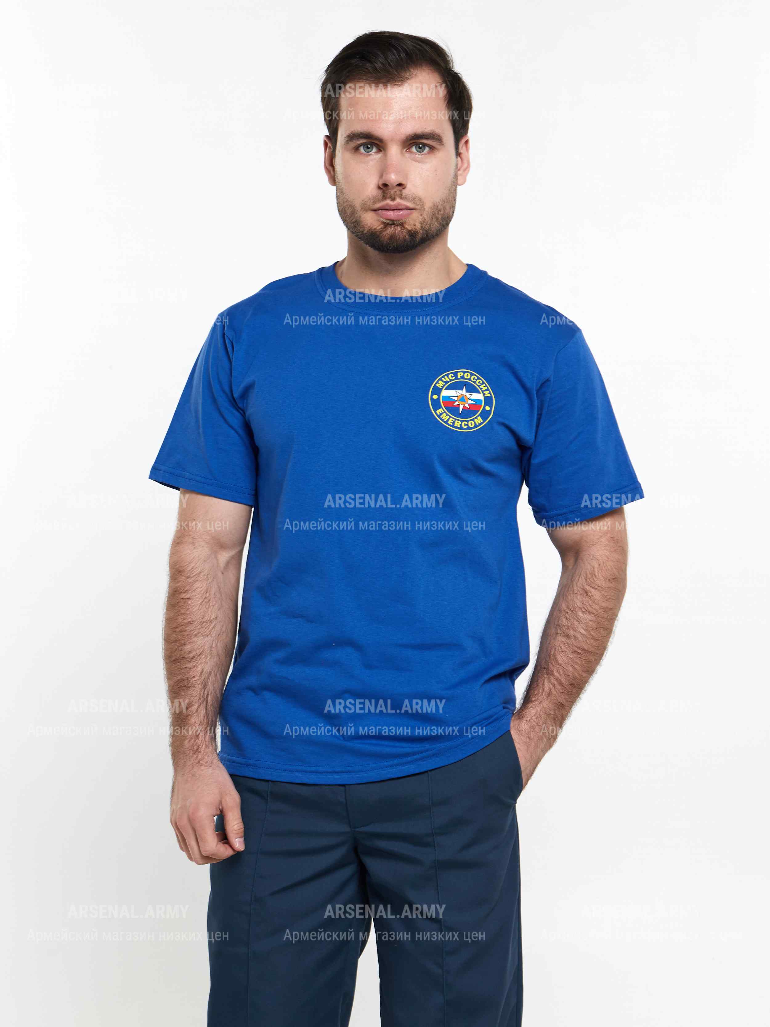 Представляет собой классическую модель со стандартным прямым покроем. Горловой вырез выполнен круглым, прошит дополнительной тканевой накладкой для снижения износа. Цвет футболки – синий. На рукаве размещена нашивка. Модель пошита из качественной ткани, на 100% состоящей из натурального хлопка. Материал хорошо впитывает влагу, пропускает воздух к телу, не растягивается в результате частых стирок.