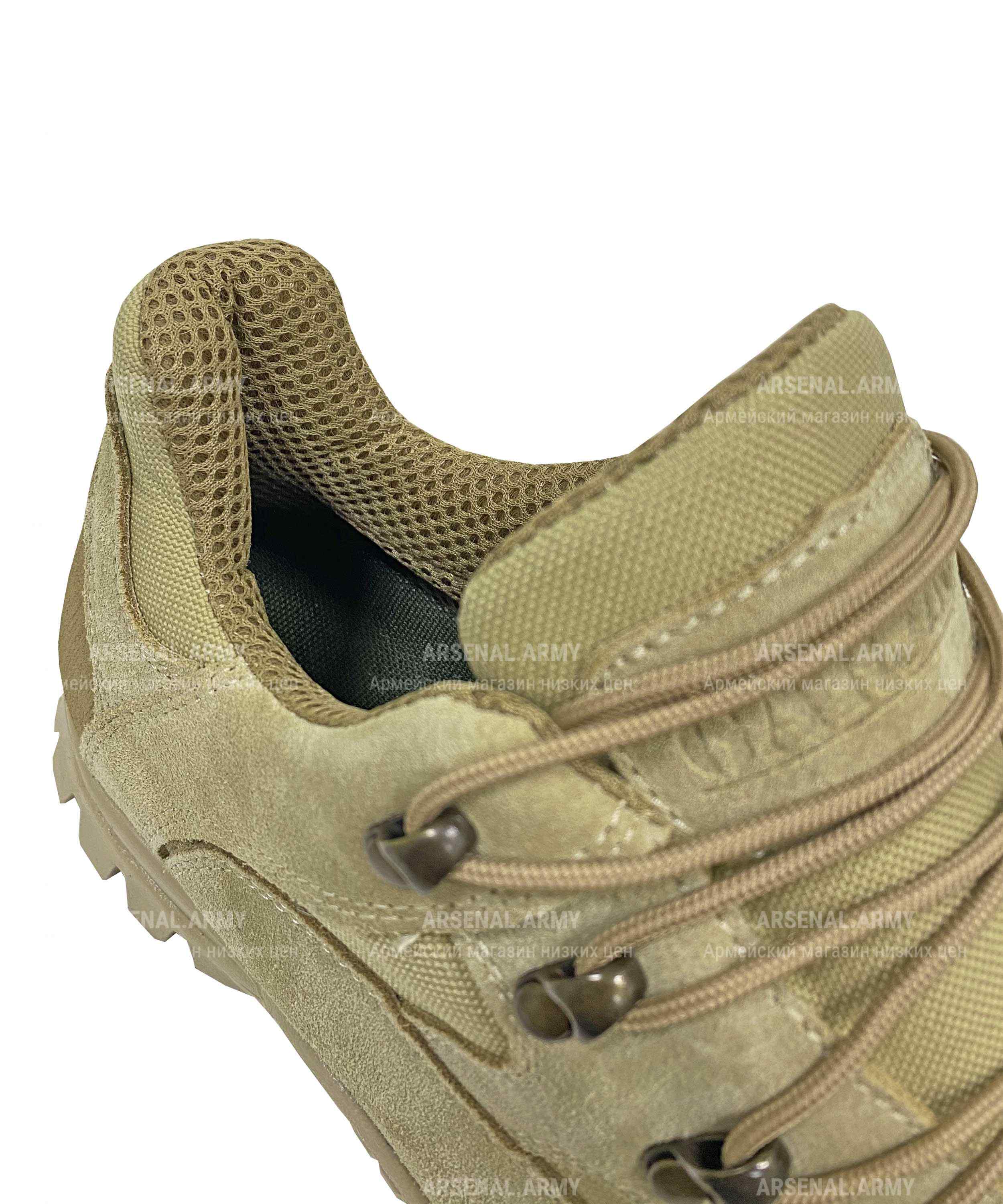 Стиль пошива приближен к спортивно-туристическому. Верхняя часть комбинированная: из натурального велюра, кожи «Matrix» и нейлоновой ткани, облегчающей конструкцию, обеспечивающей требуемый уровень теплоотвода. Подкладка выполнена из современной дышащей синтетической сетчатой ткани. Подошва прочная, массивная, с усиленными задником и носком. Метод крепления – клеевой, но передняя и задняя часть дополнительно прошиты нитью для повышения прочности.