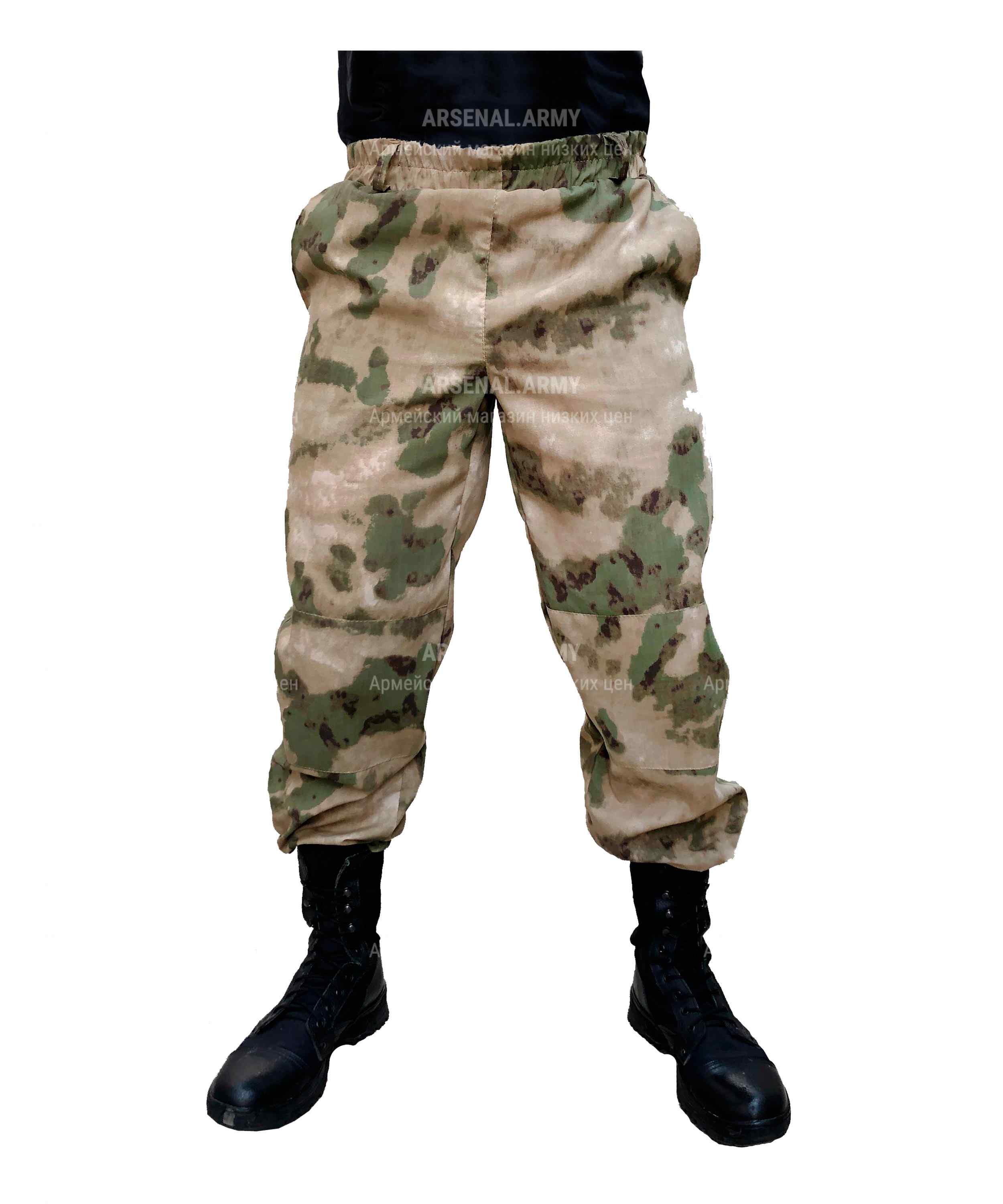 Брюки можно носить как с ремнем, так и без него благодаря резинке в поясе. Понизу штанин также пущена эластичная лента, которая позволяет заправлять их в обувь.