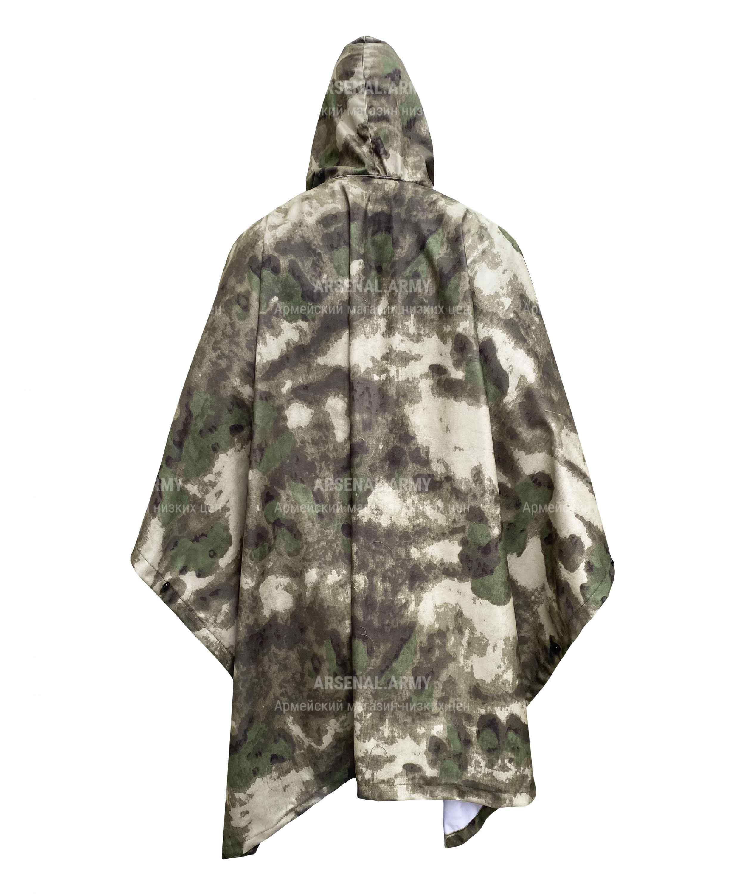 Плащ выполнен в расцветке мох и имеет универсальный размер. Пропитан влагооталкивающей пропиткой. Высокий ворот переходящий в капюшон застегивается на небольшую молнию. Капюшон утягивается.
