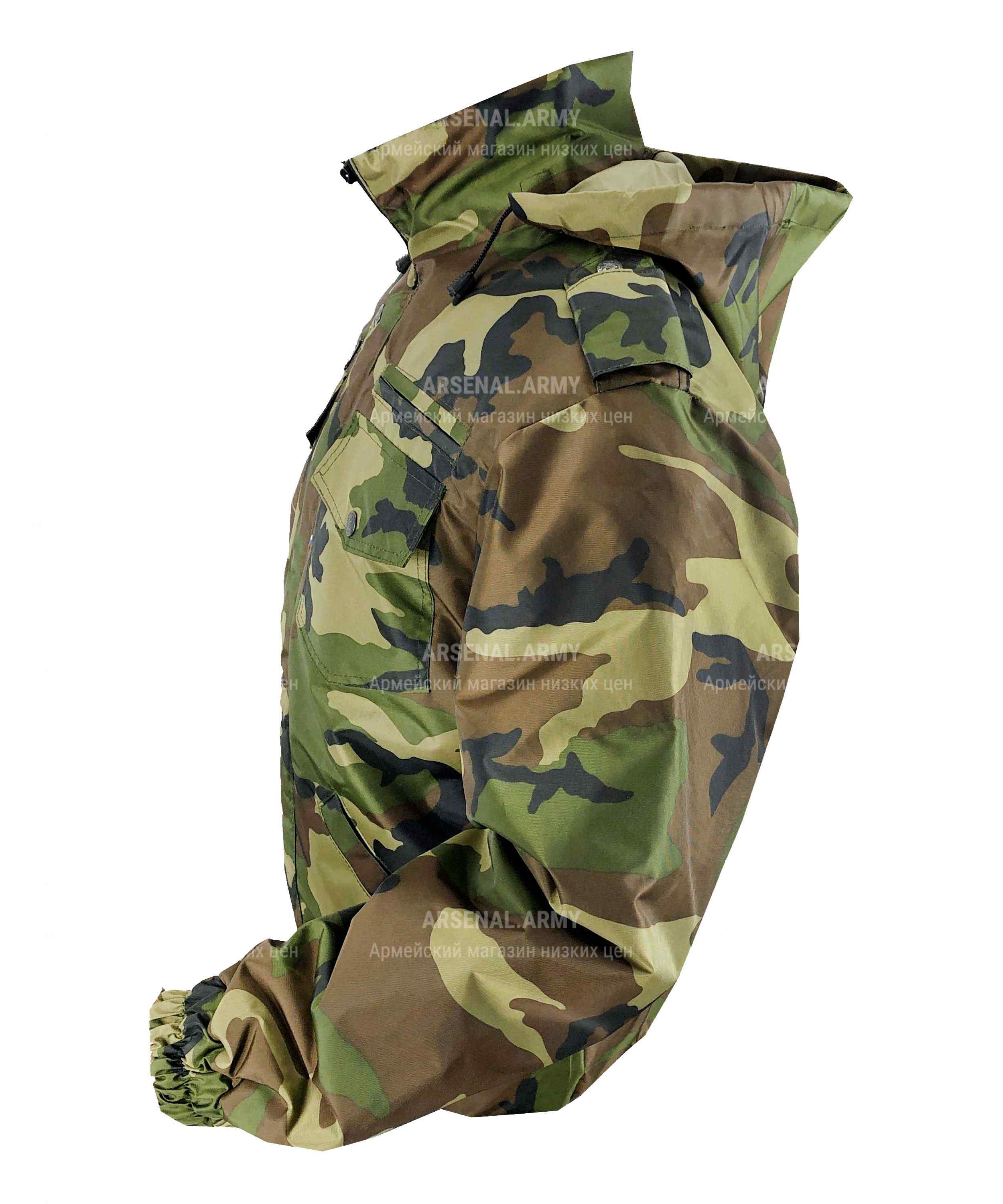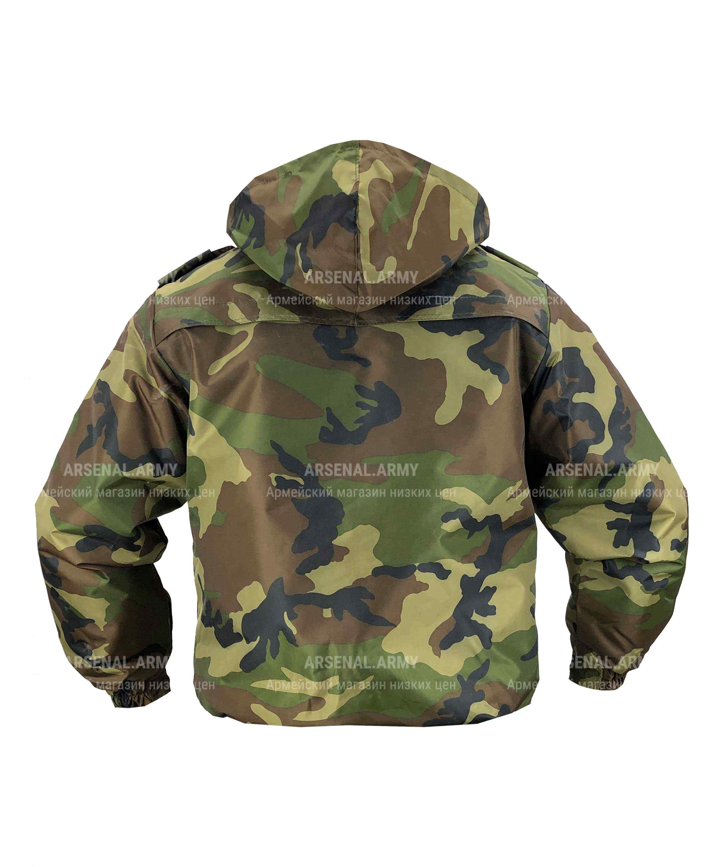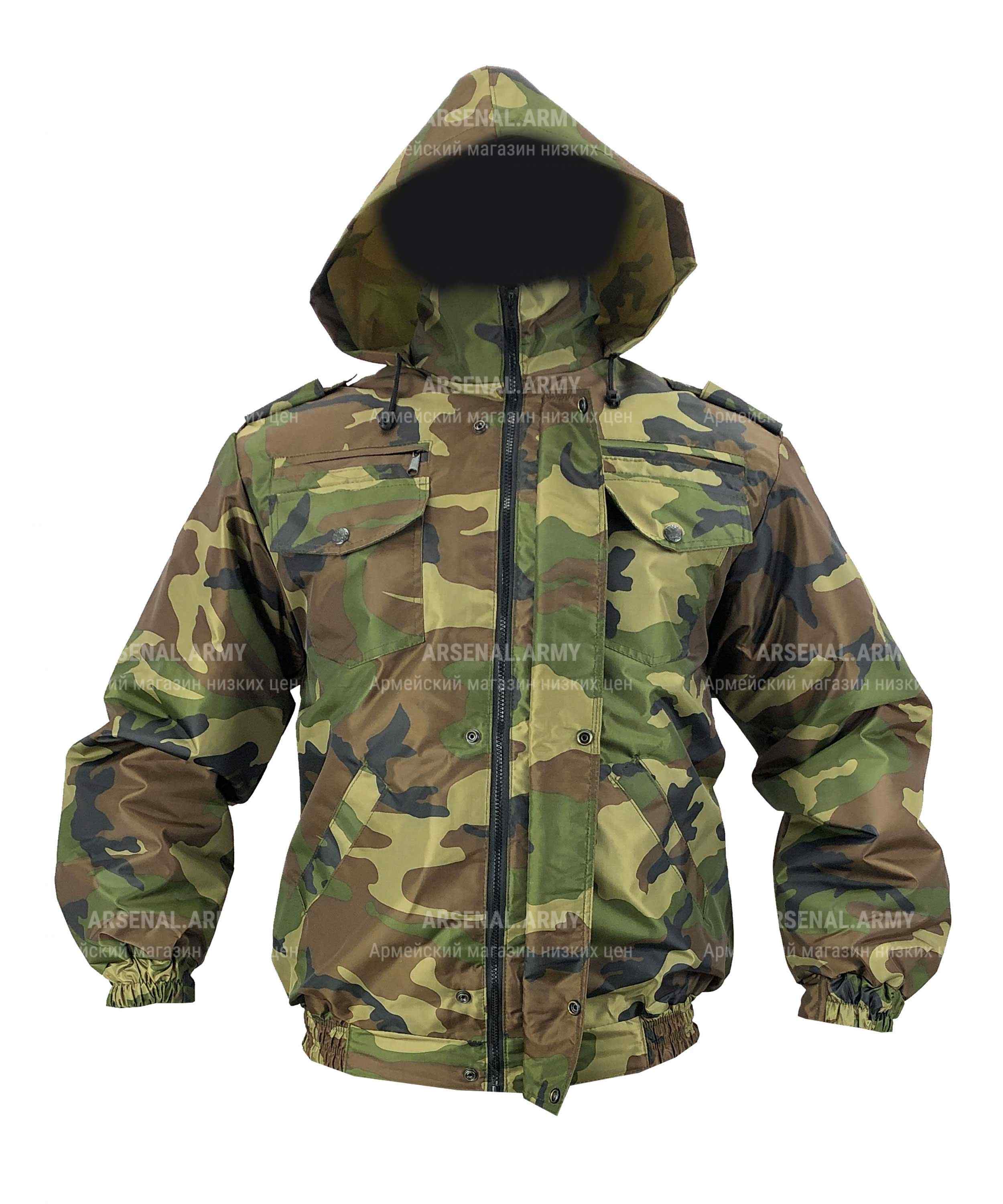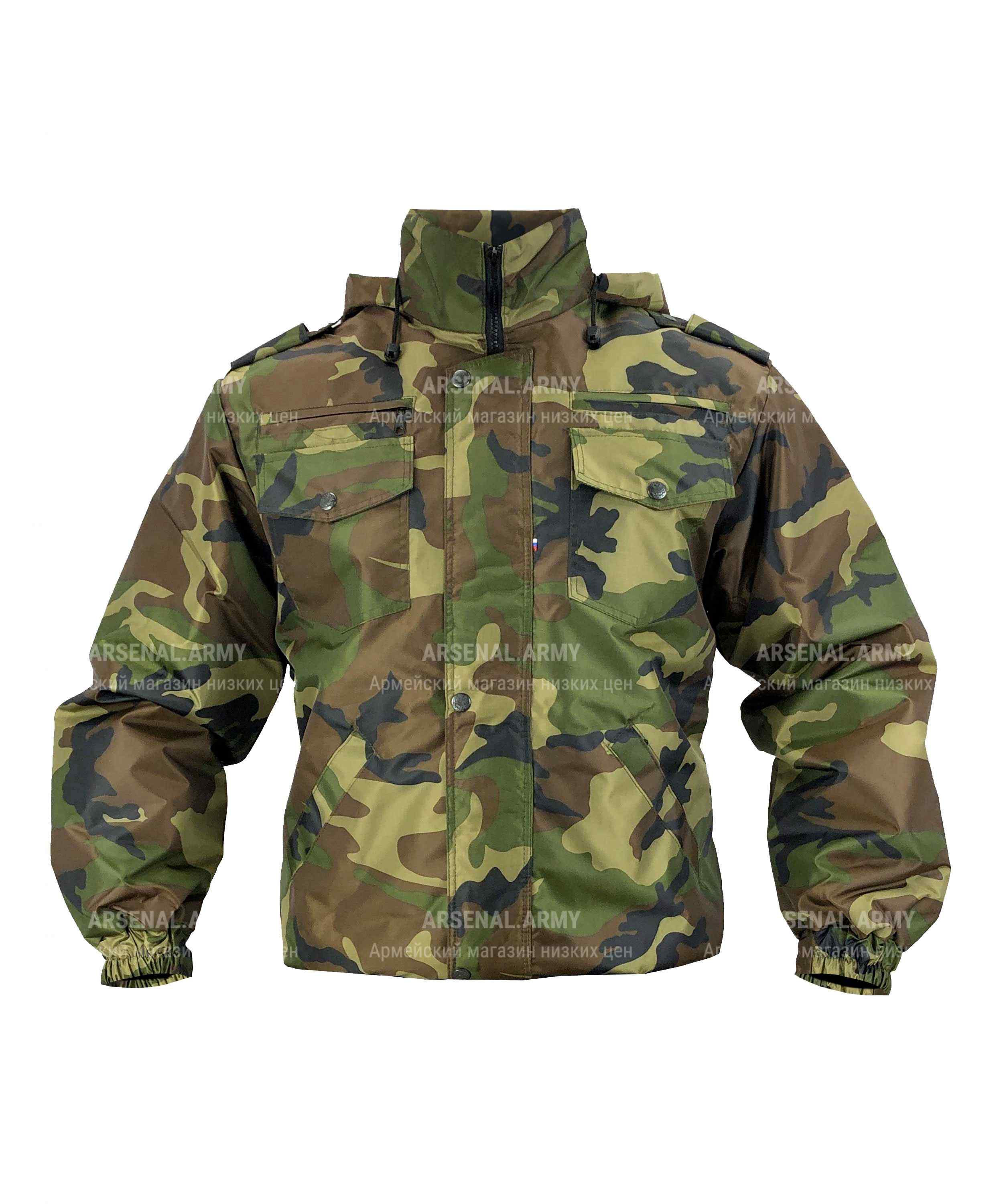 Куртка имеет камуфляжную раскраску «лес» и пошита из ткани повышенной прочности. Застёгивается на кнопки и молнию. Глубокий капюшон с регулирующими стяжками удобен в носке и препятствует задуванию в шею и в голову. Можно спрятать под воротник. На плечах присутствуют фальшпогоны.