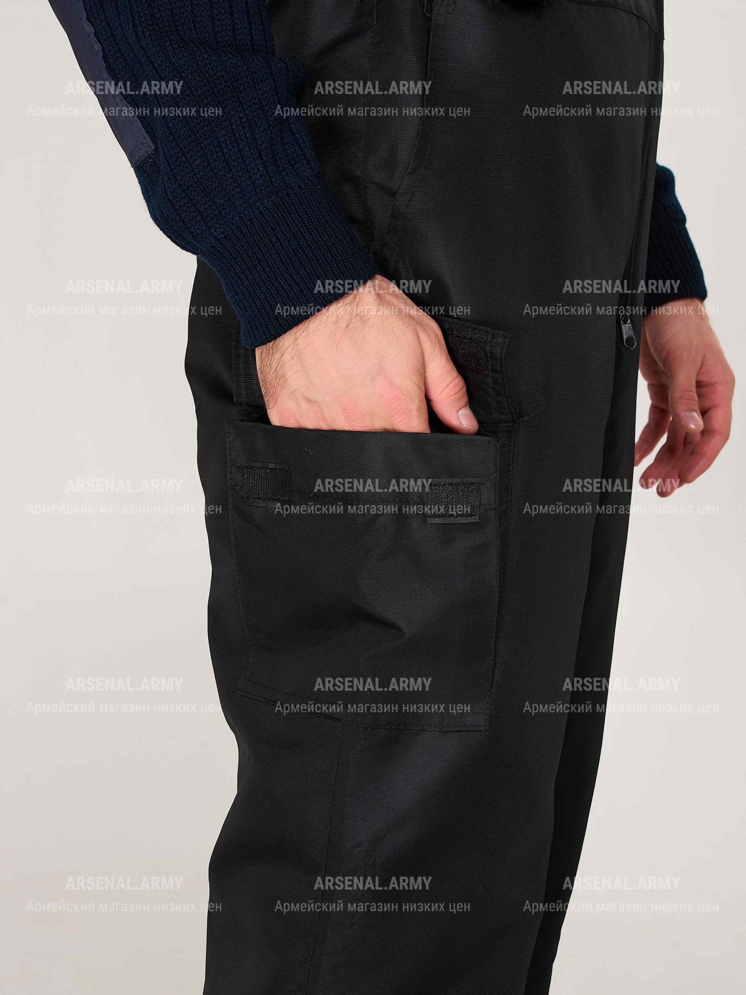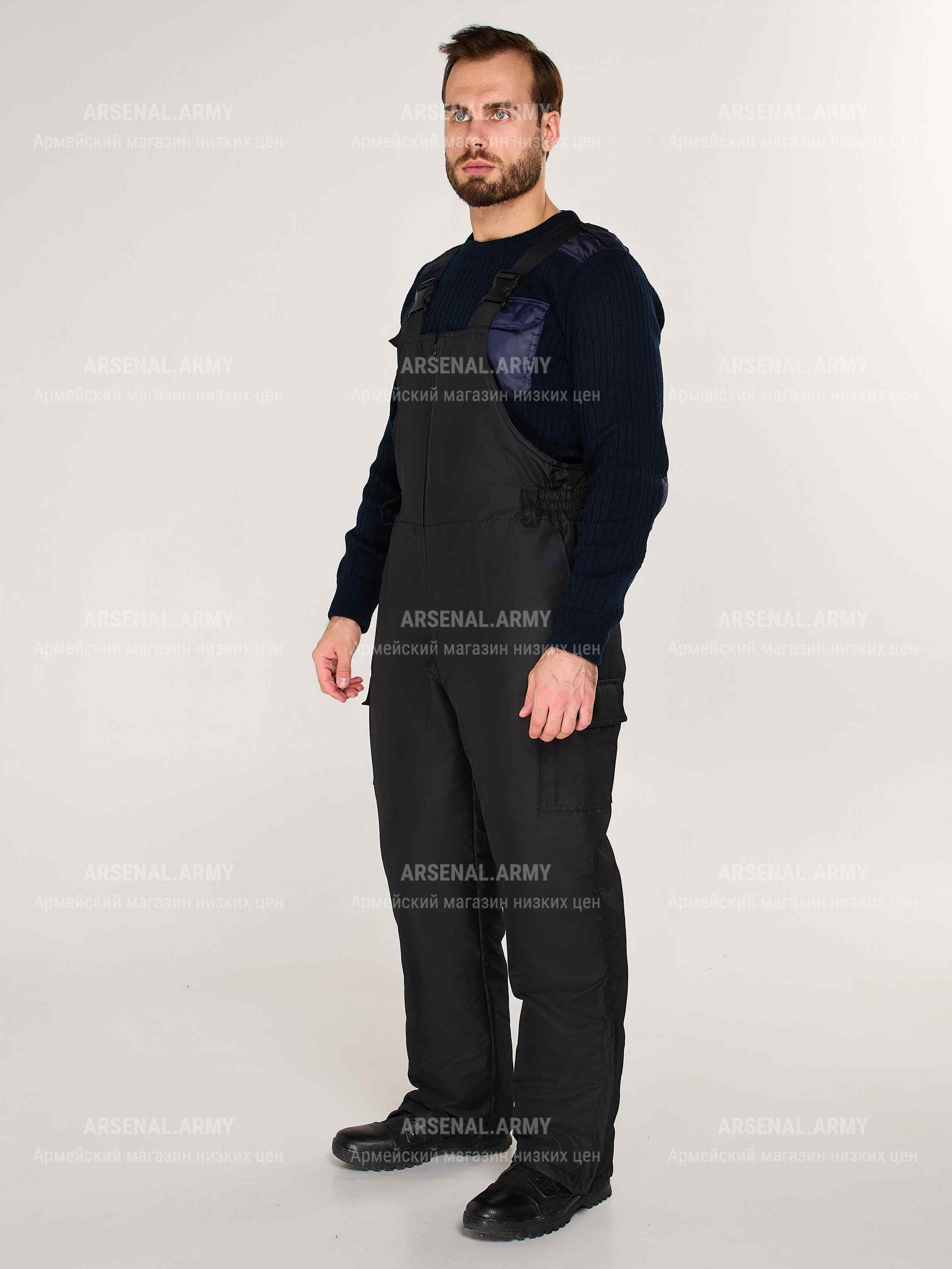 Цвет - чёрный. Комбинезон застёгивается на молнию и фиксируется лямками с креплениями типа "трезубец". По бокам имеются карманы открытого типа. На поясе предусмотрены кольца по ремень.