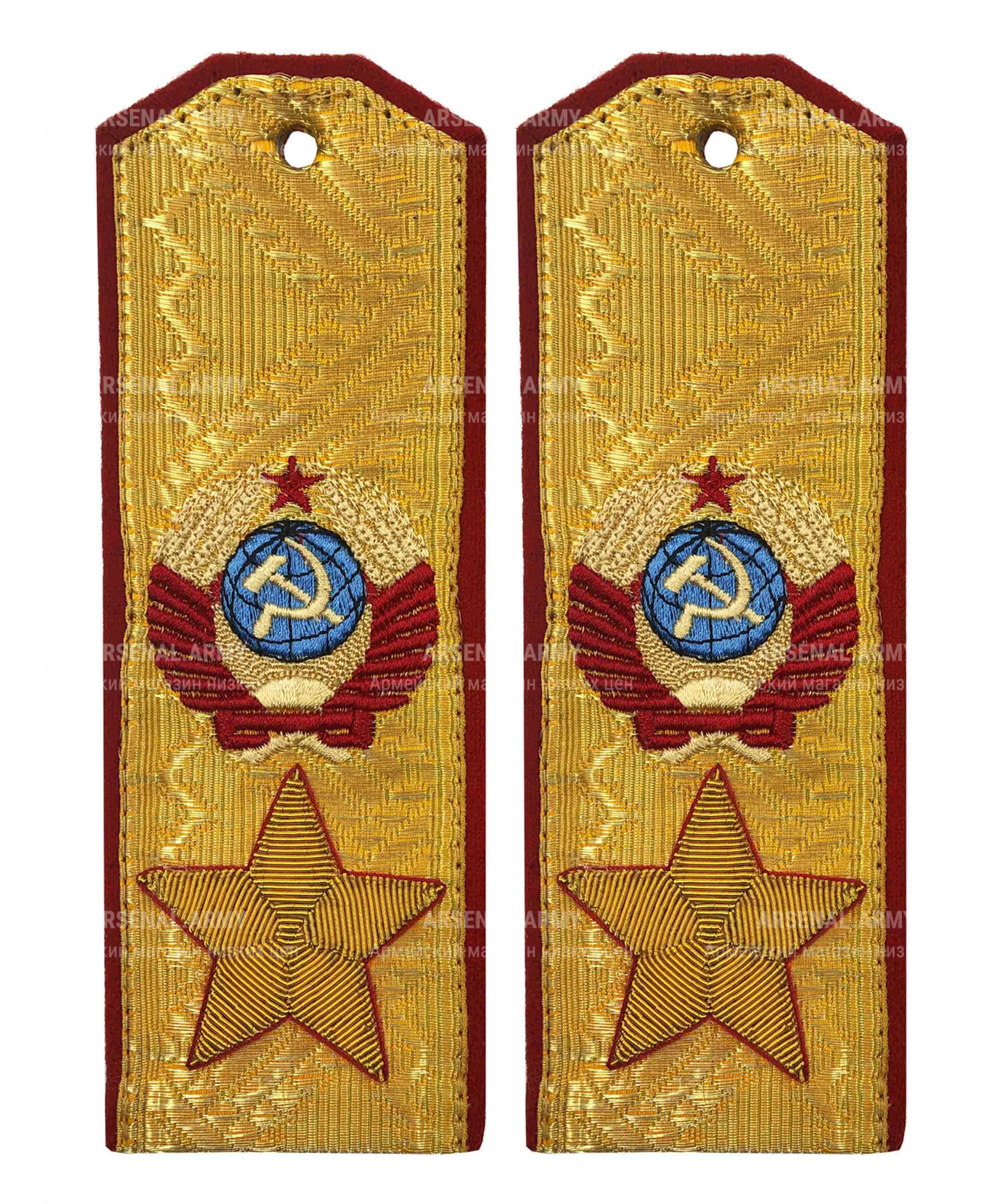 Представляем раритетные погоны для высшего военного звания времён СССР - маршала. Погоны имеют респектабельные внешний вид и изготовлены из качественного материала. Подойдут для создания образа военачальника или пополнят коллекцию ценителя советской военной формы.