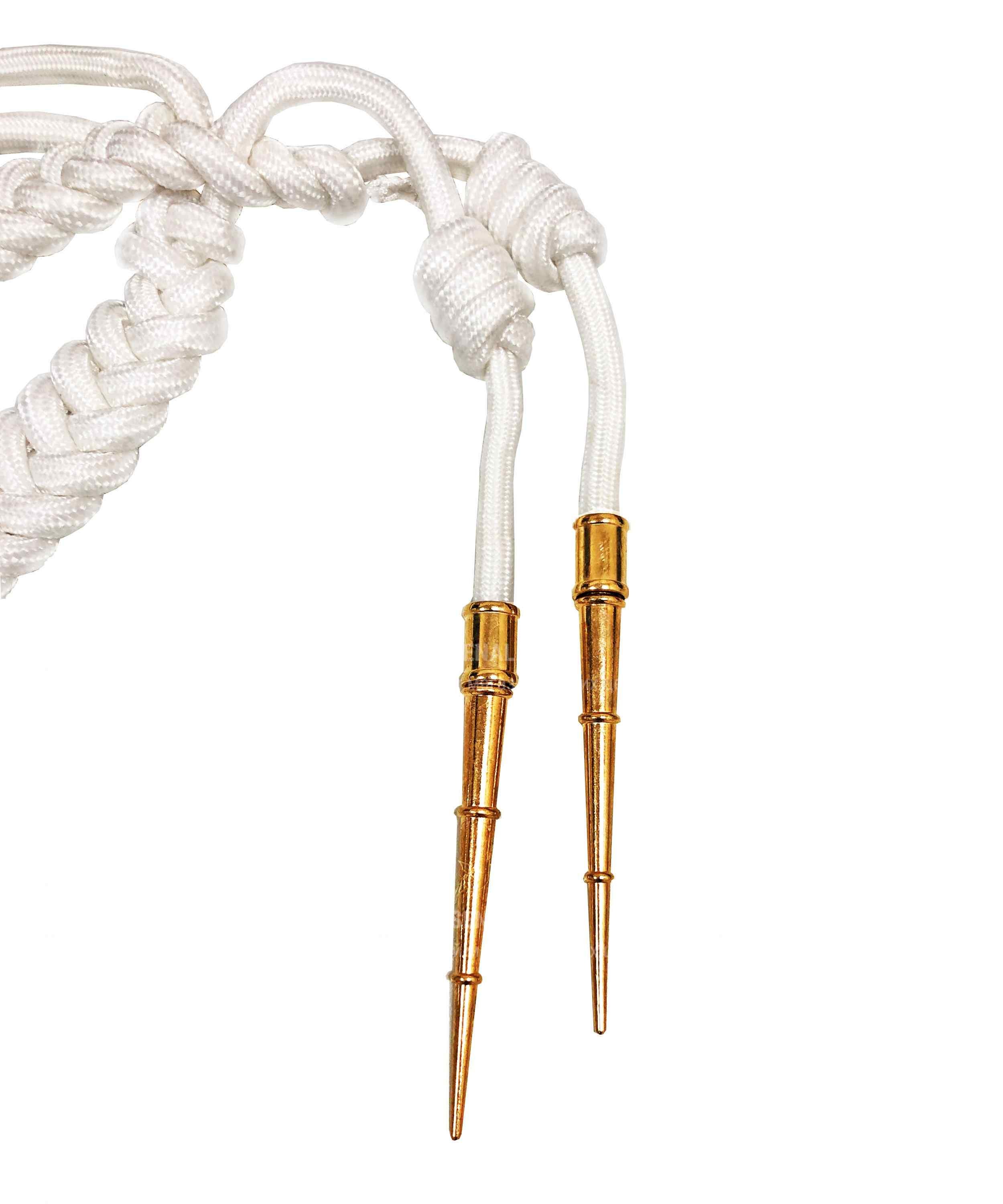 Аксельбант офицерский старший состав с двумя наконечниками белого цвета представляет собой декоративный элемент, который станет отличным аксессуаром к форме. Аксельбант изготовлен из капроновой нити, что обеспечивает его прочность и долговечность. Благодаря этому, он будет служить долго и надежно, сохраняя свой первоначальный вид. Аксельбант произведен в России, что гарантирует высокое качество изделия.
