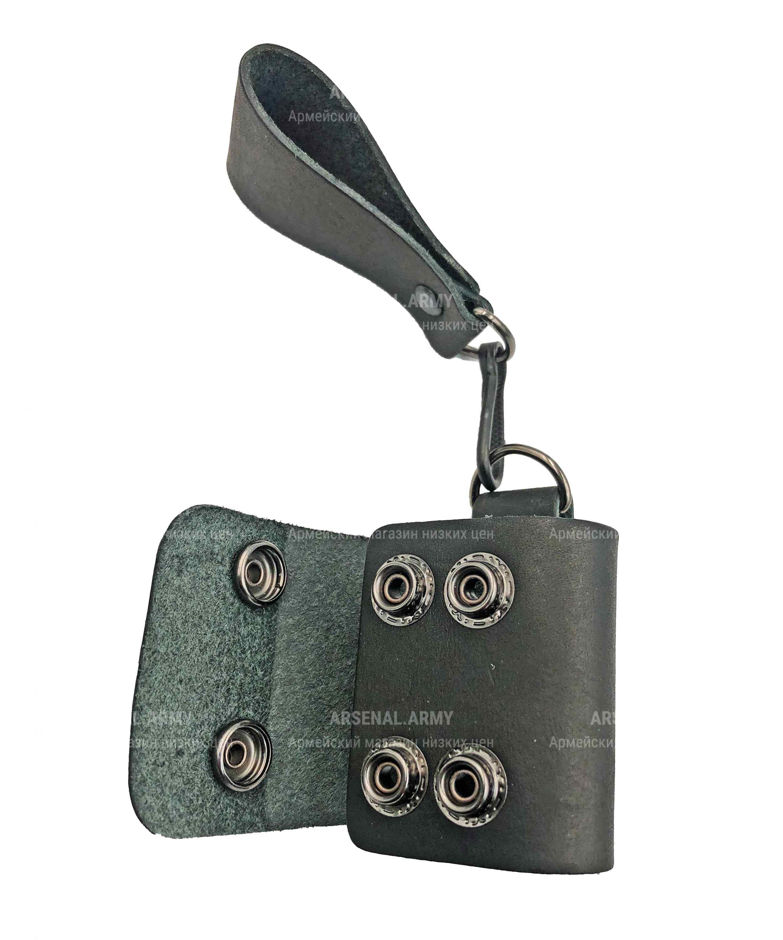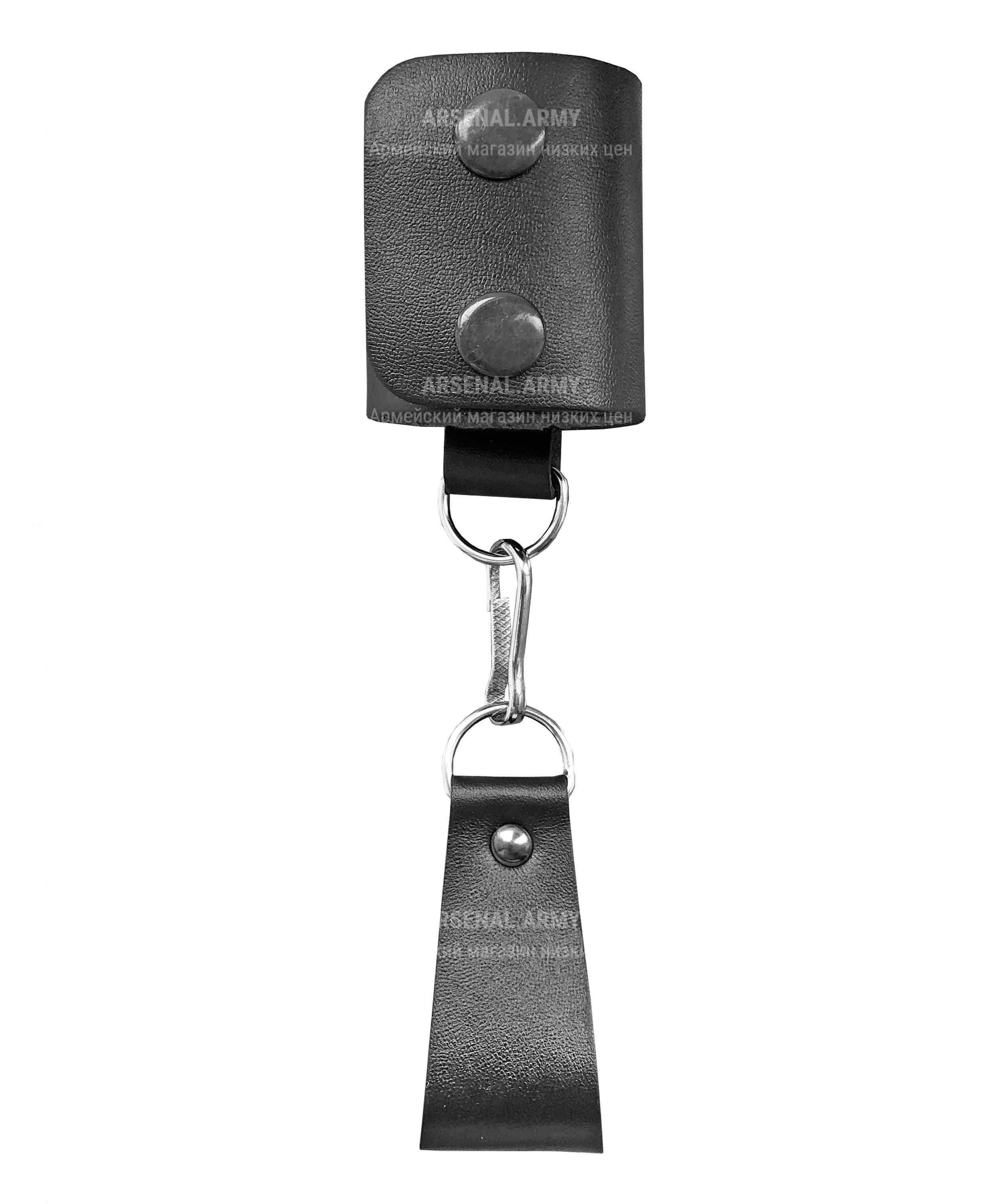 Полезное для частных охранников и сотрудников правоохранительных органов изделие – универсальный держатель для стандартной резиновой дубинки. Состоит из двух частей, соединенных между собой подвижным металлическим карабинмв. Материал изготовления самих петель – натуральная, качественно выделанная кожа. Тип крепления и применения – универсальный. Механизм фиксации – металлические кнопки.