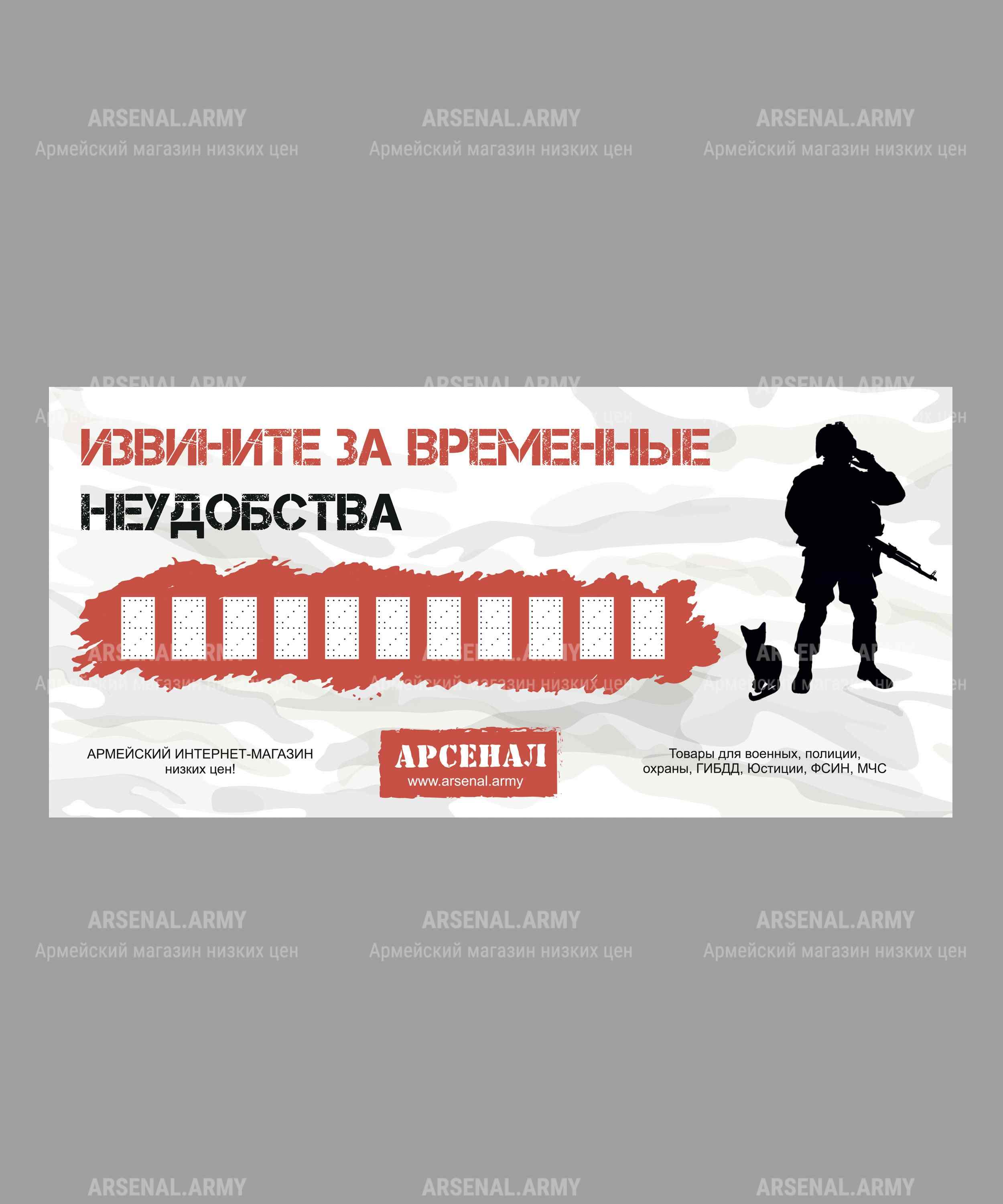 В нашем интернет-магазине вы можете купить табличку с надписью "Извините за временные неудобства" всего за 1 руб. Она имеет презентабельный внешний вид. Она выполнена в стиле милитари из картона и бумаги.