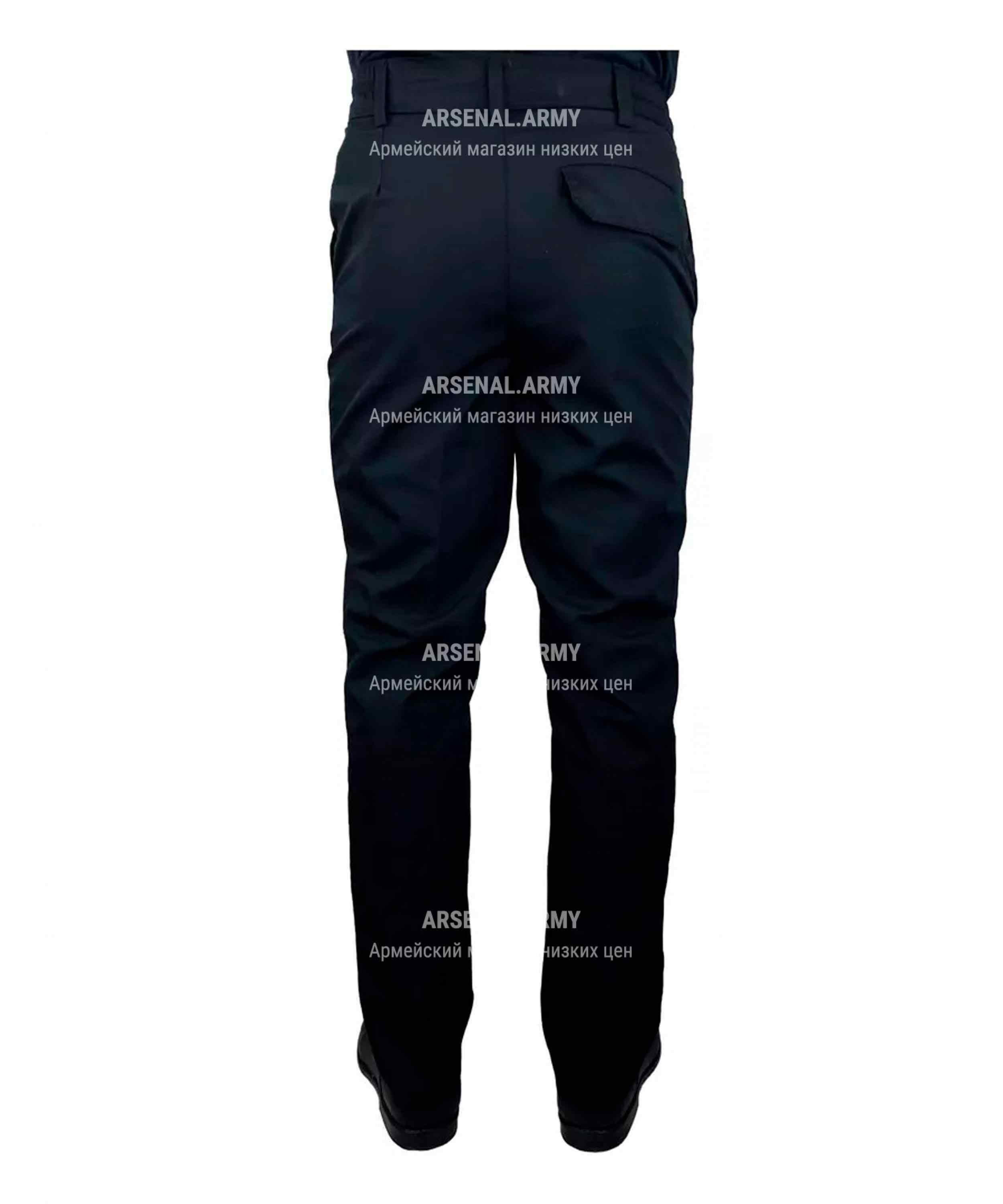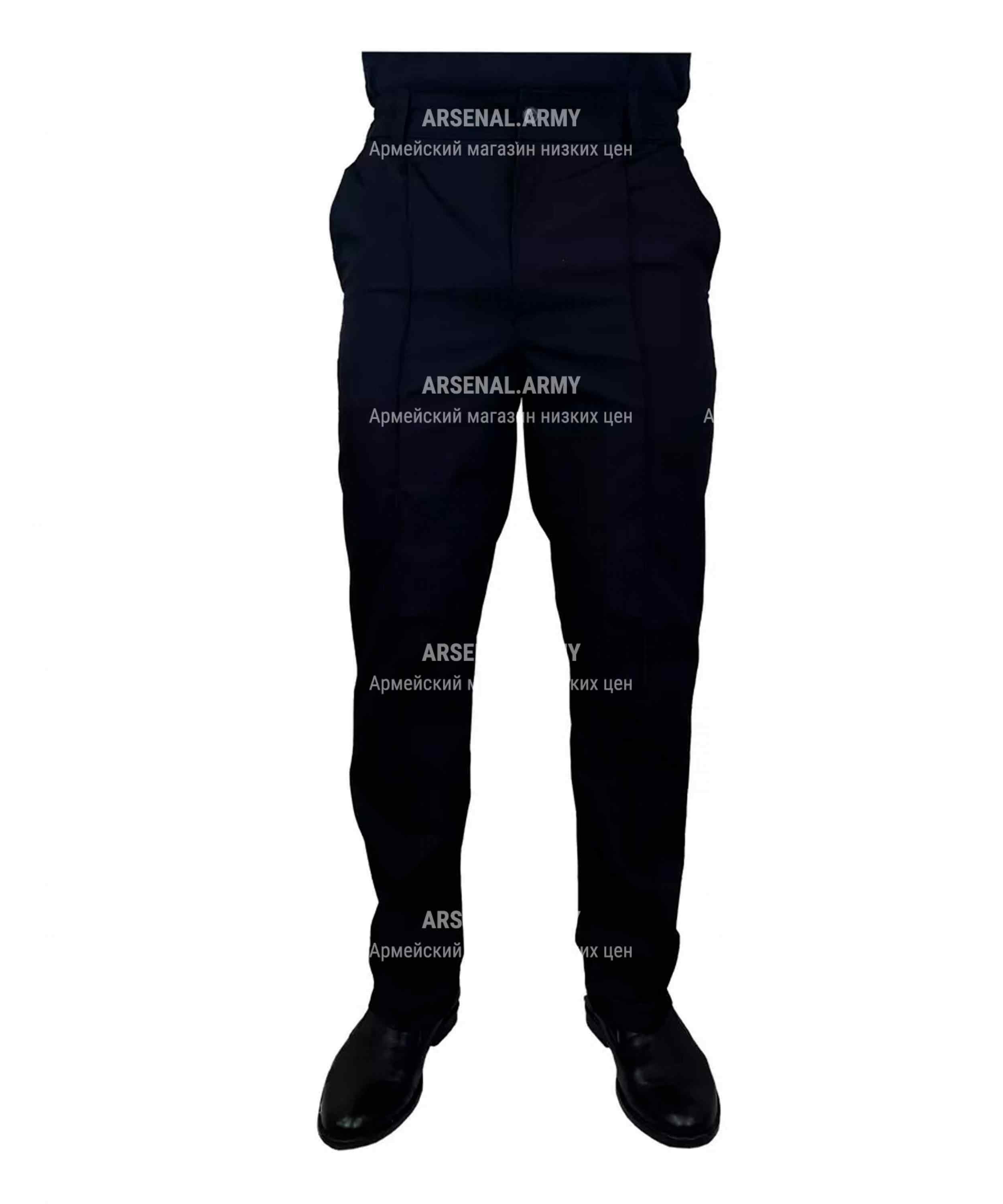 Брюки прямые, классического покроя, с двумя прорезными карманами. В пояс вшиты эластичные стяжки. Застёгиваются на пуговицу и молнию.