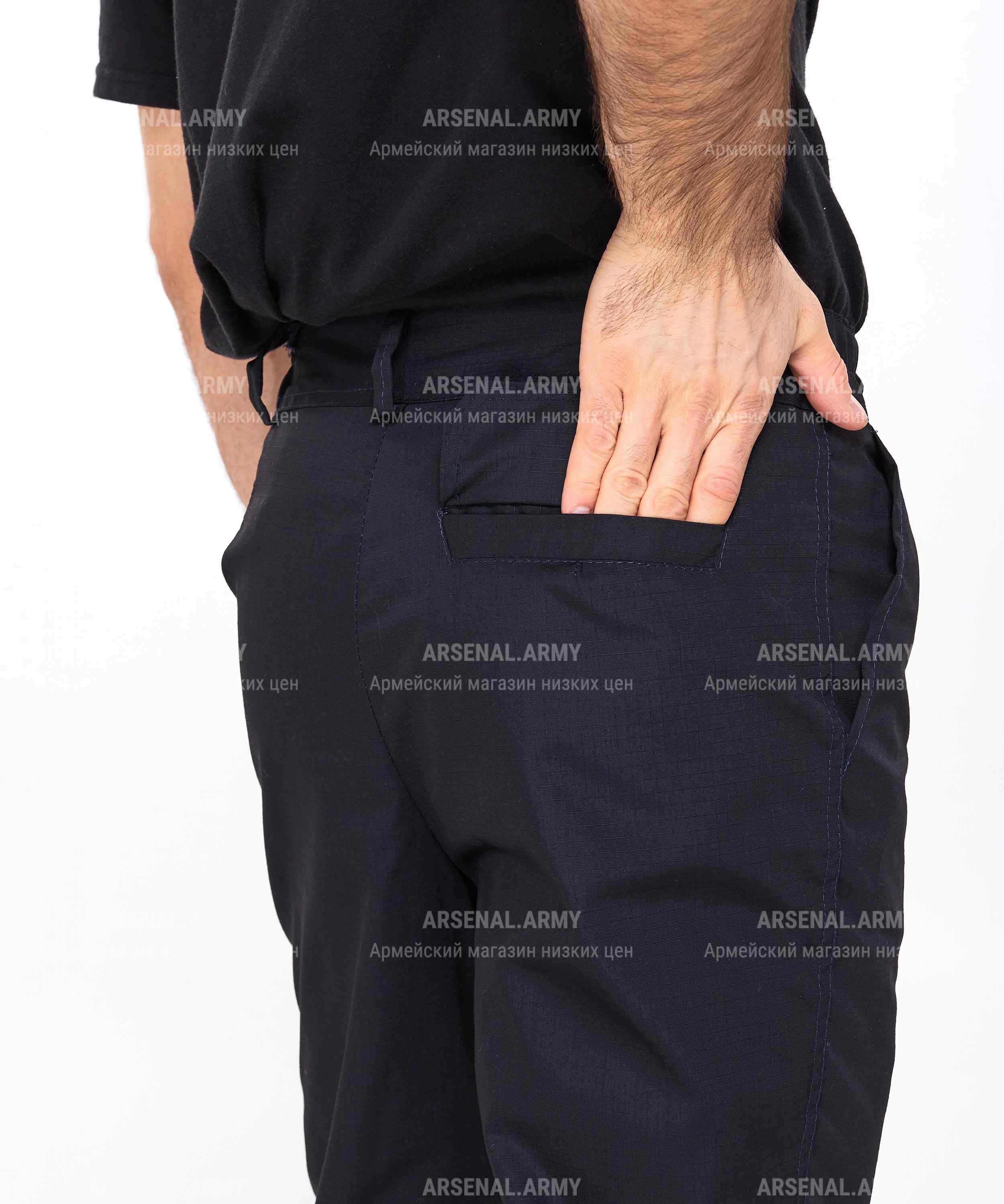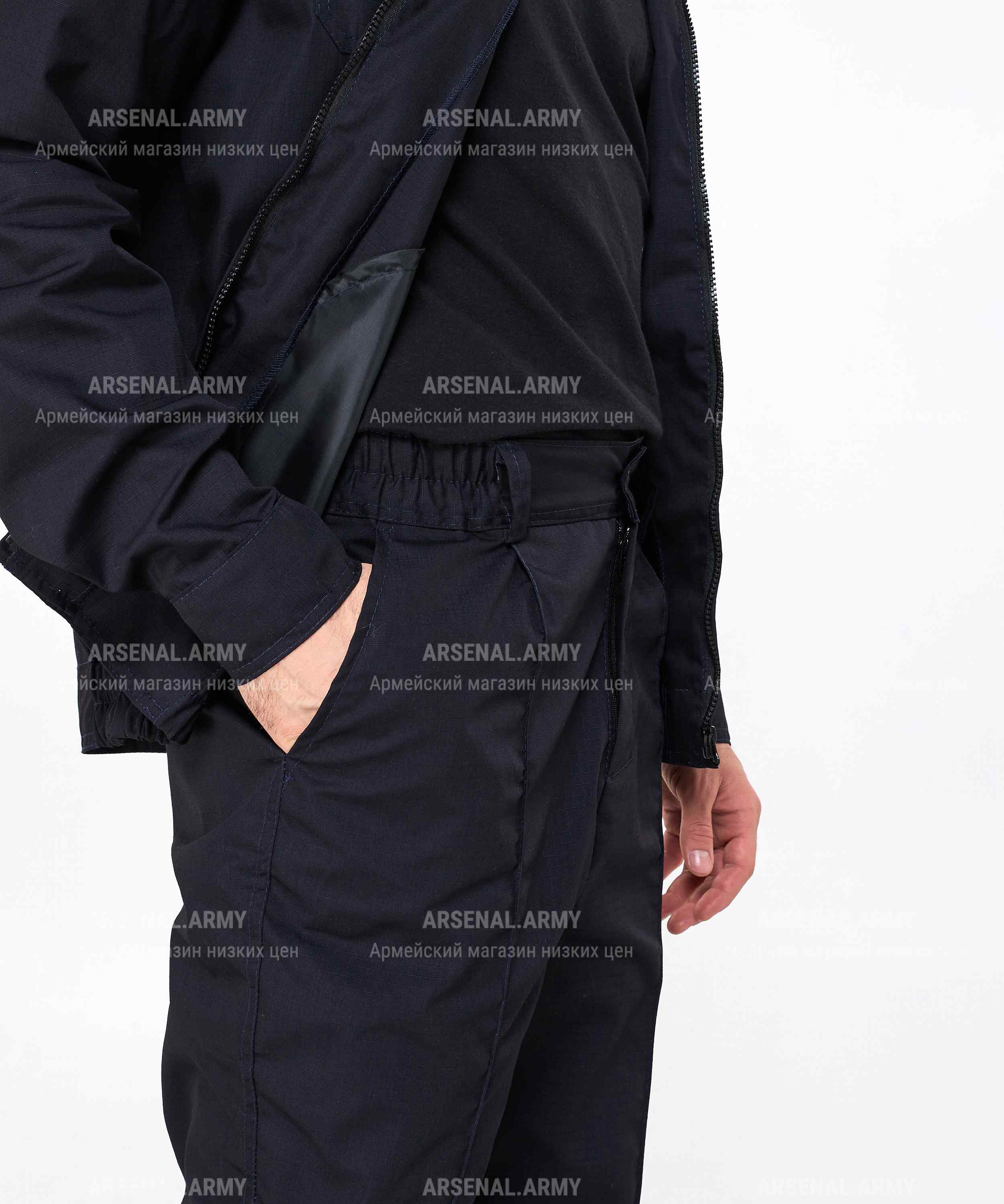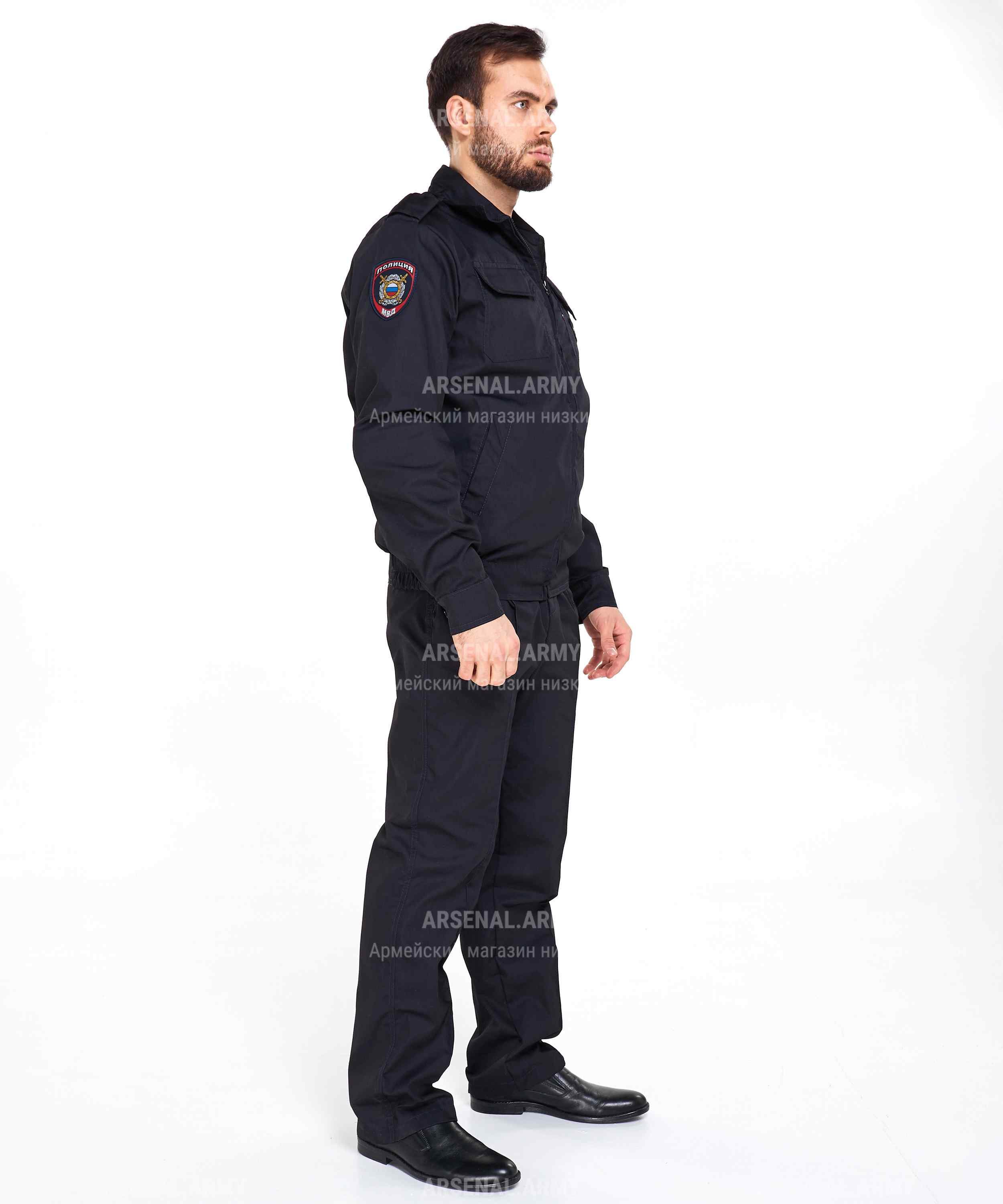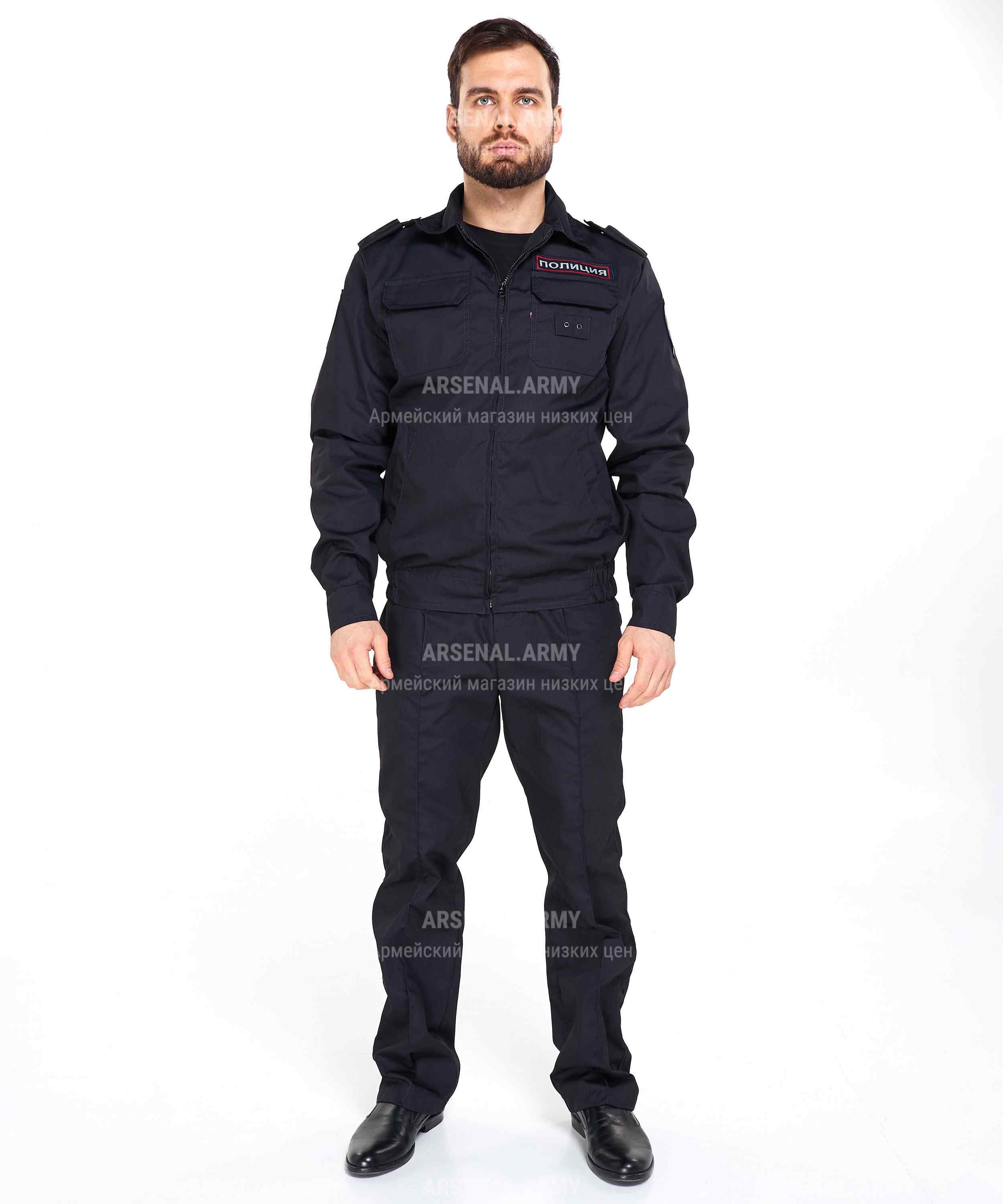 Представленный костюм изготовлен специально для работников полиции. Он выполнен из ткани «рипстоп» в темно-синем цвете. Технология «рипстоп» делает ткань более износостойкой и предотвращает ее расхождение при образовании дырки или пореза. Данный костюм, выполненный из хлопка в сочетании с синтетическим материалом, отлично подходит для лета, так как позволяется телу дышать, а также легко высыхает при намокании.