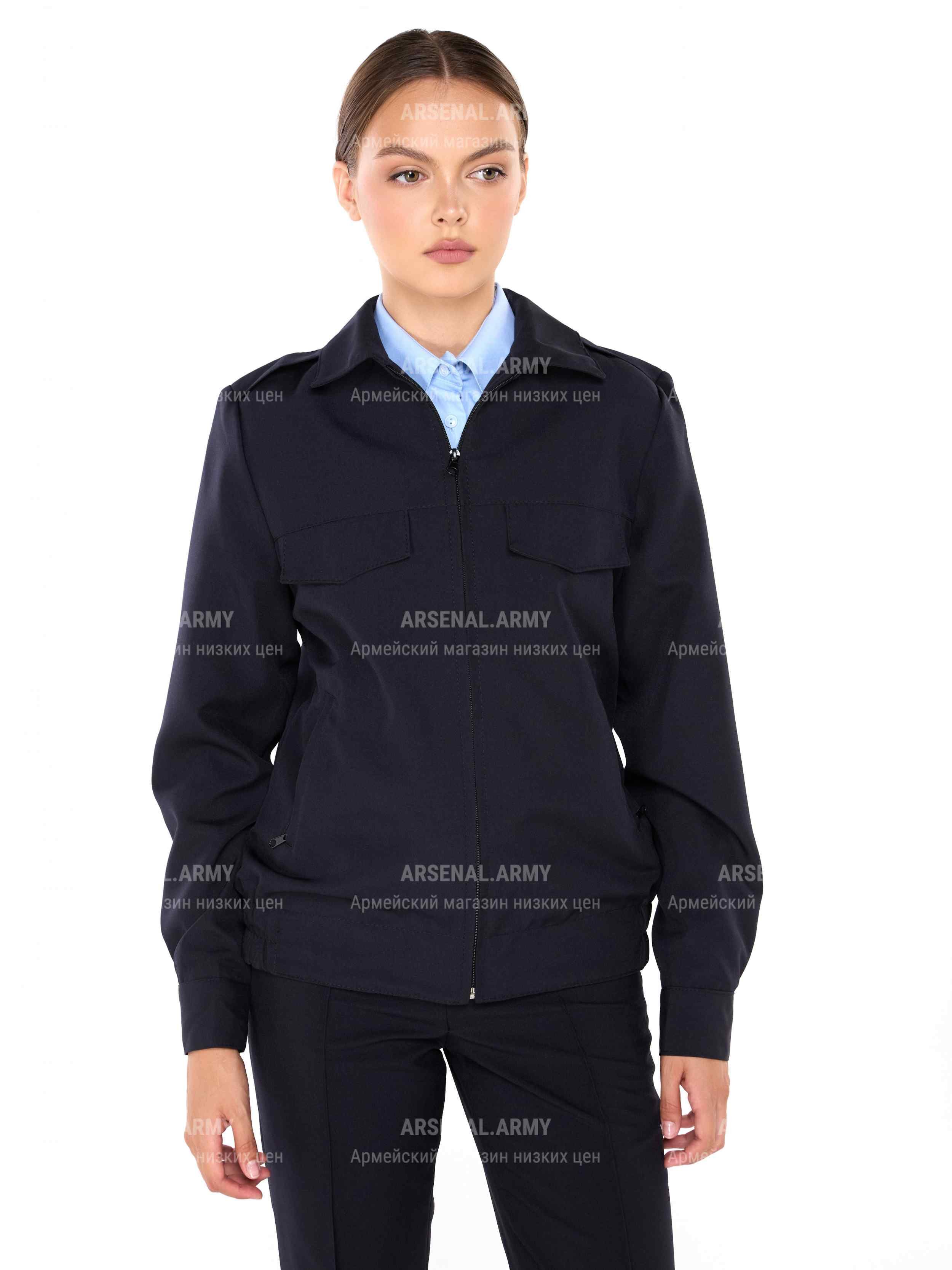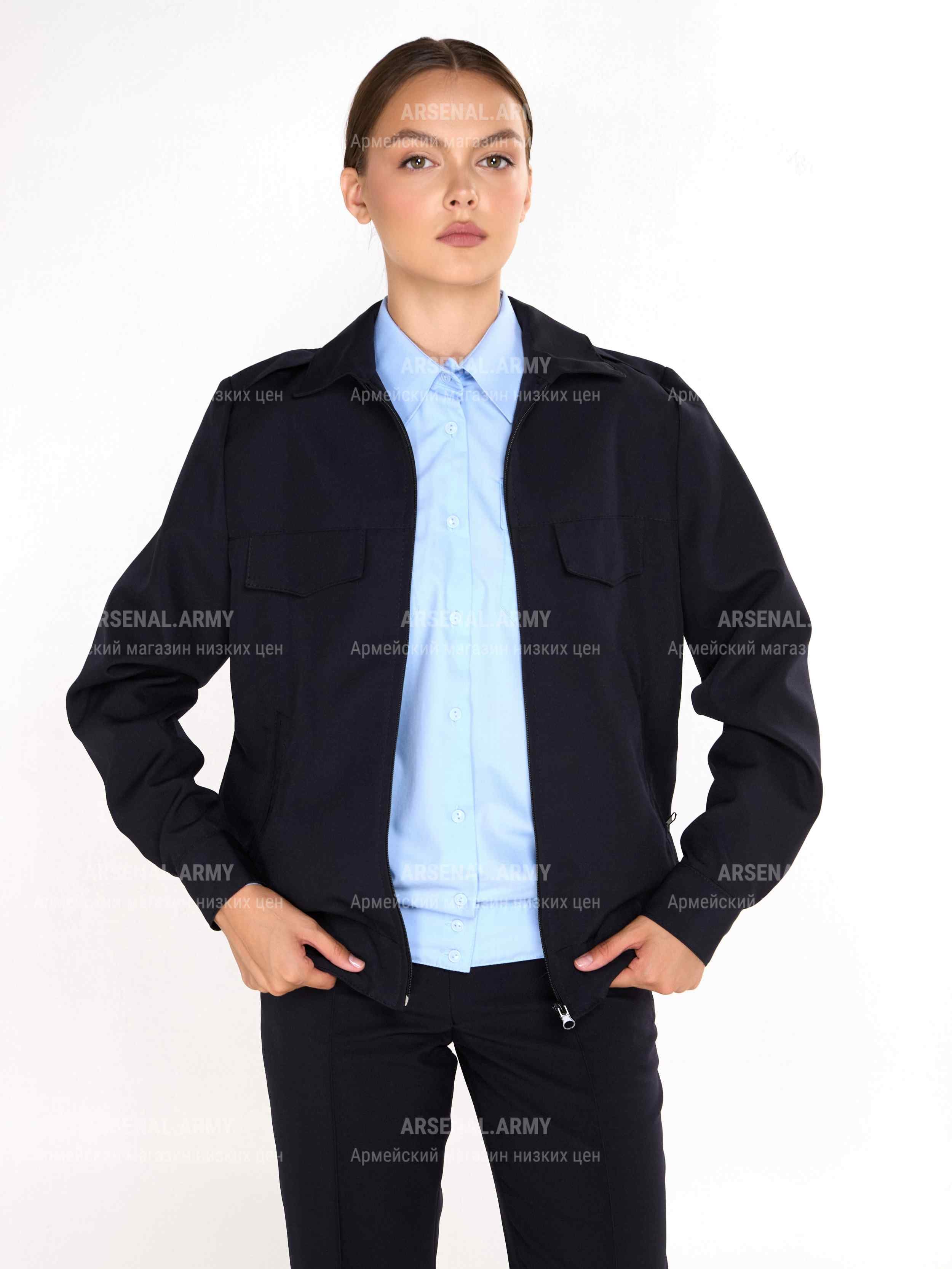 Данная модель – женская темно-синяя форменная куртка, предназначенная для ношения в качестве повседневной формы в любое время года. Так как она является элементом стандартного обмундирования, куртка в полной мере соответствует всем действующим требованиям и ТУ.