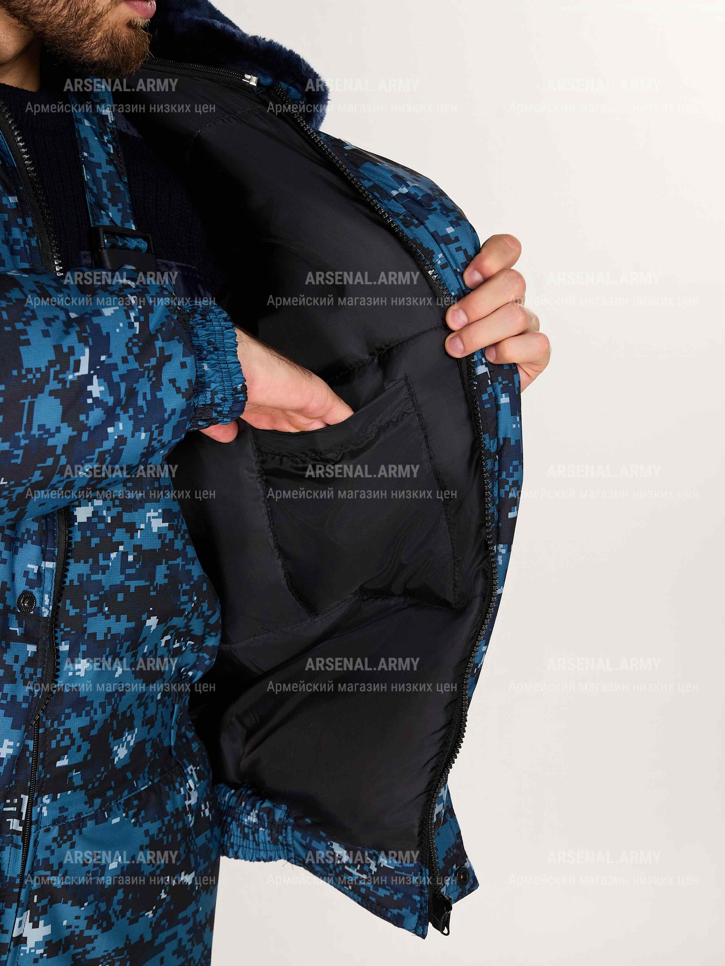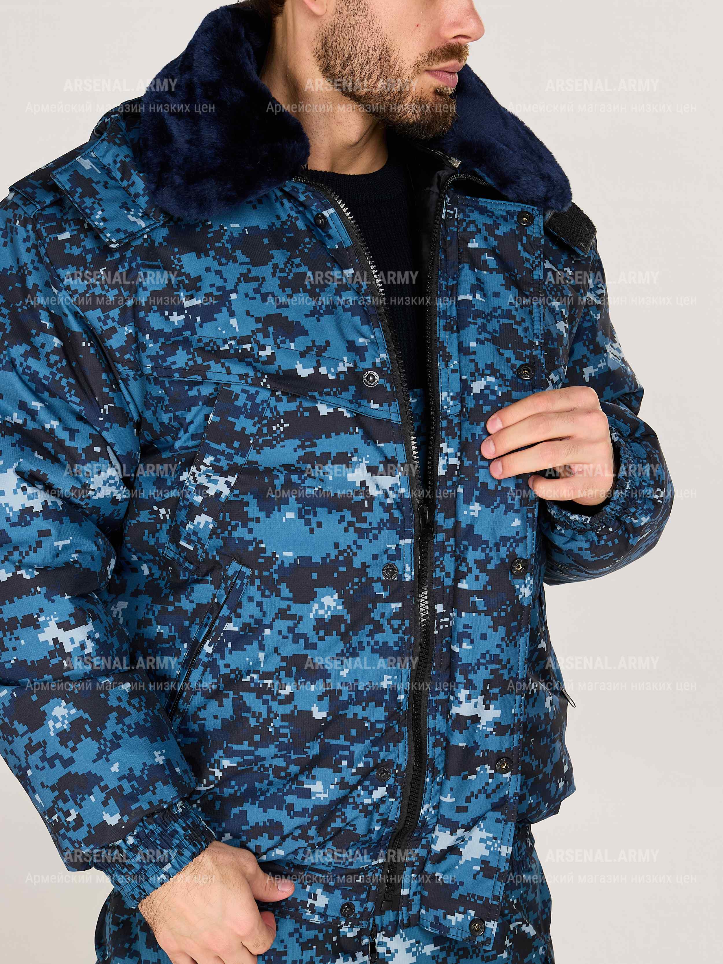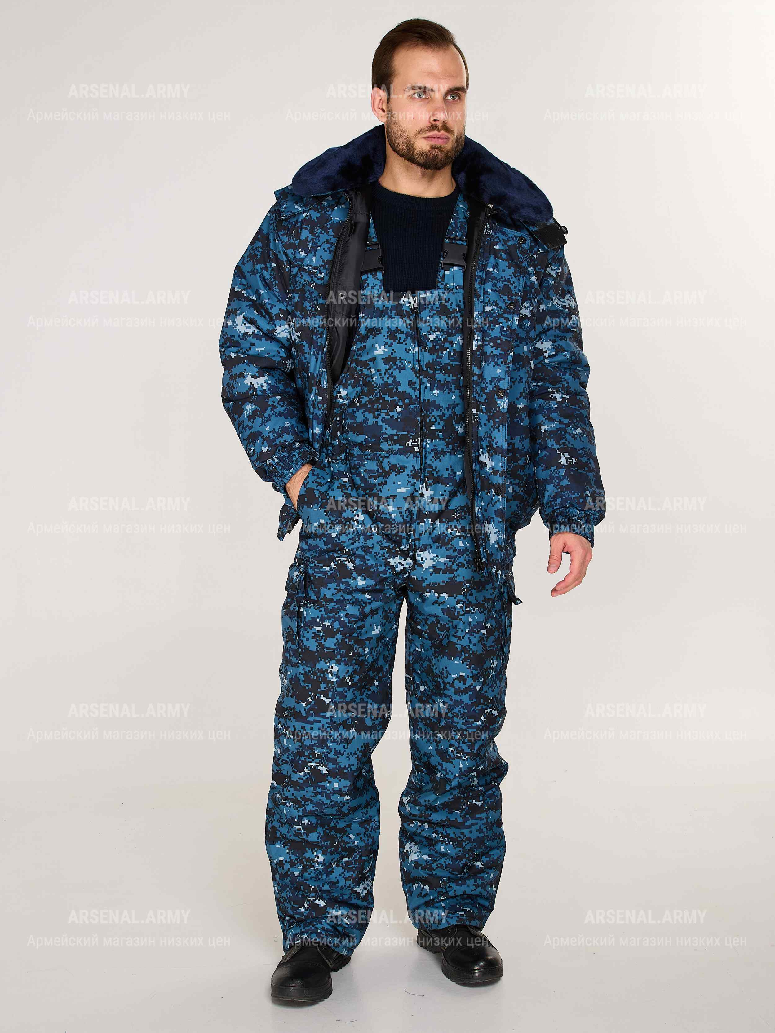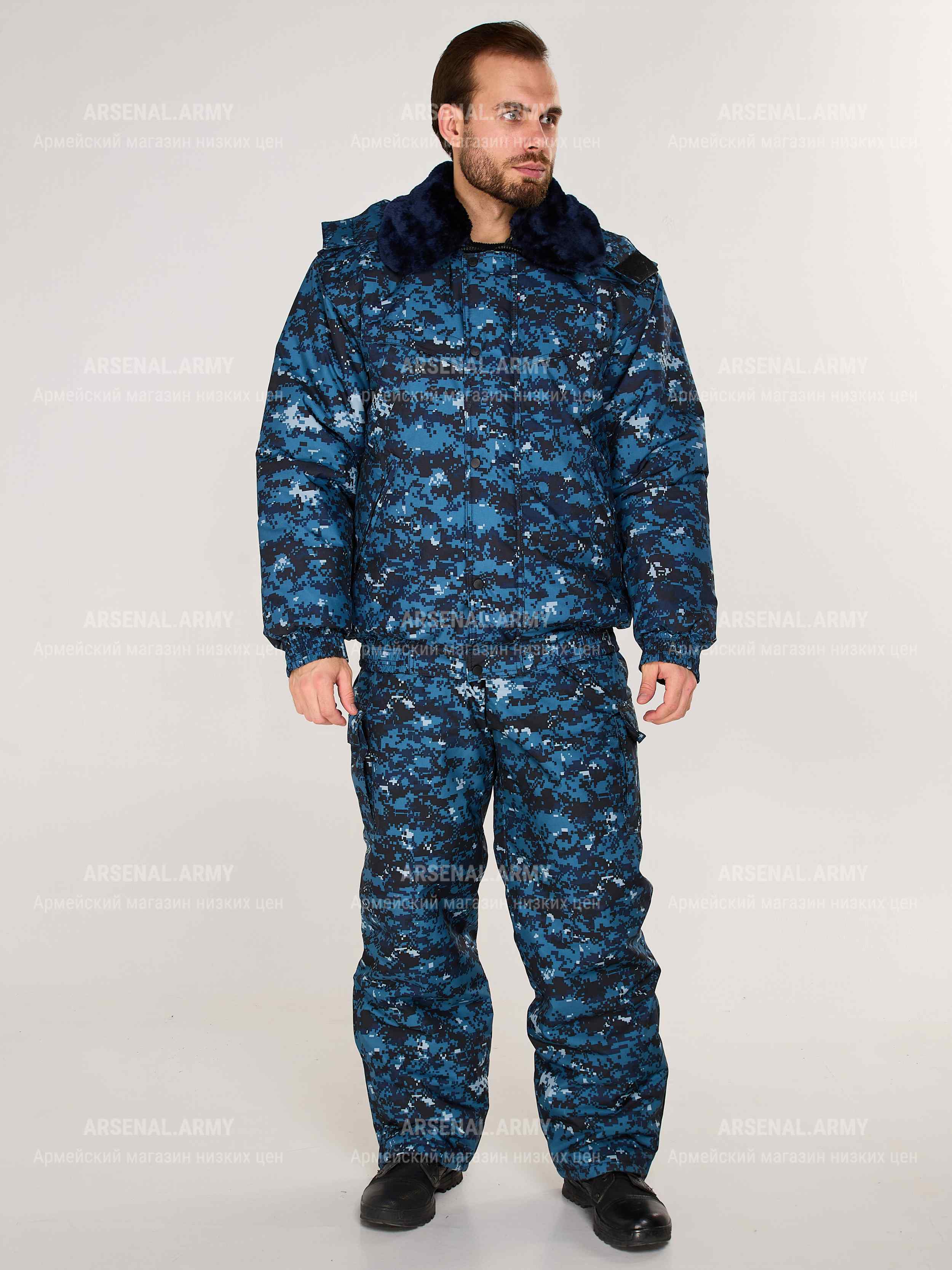 Костюм зимний цифра синяя представляет собой высококачественную одежду, разработанную специально для мужчин. Произведенный в России, этот продукт отличается прочностью и долговечностью, что делает его отличным выбором для охранных предприятий, таких как полиция и ФСИН.