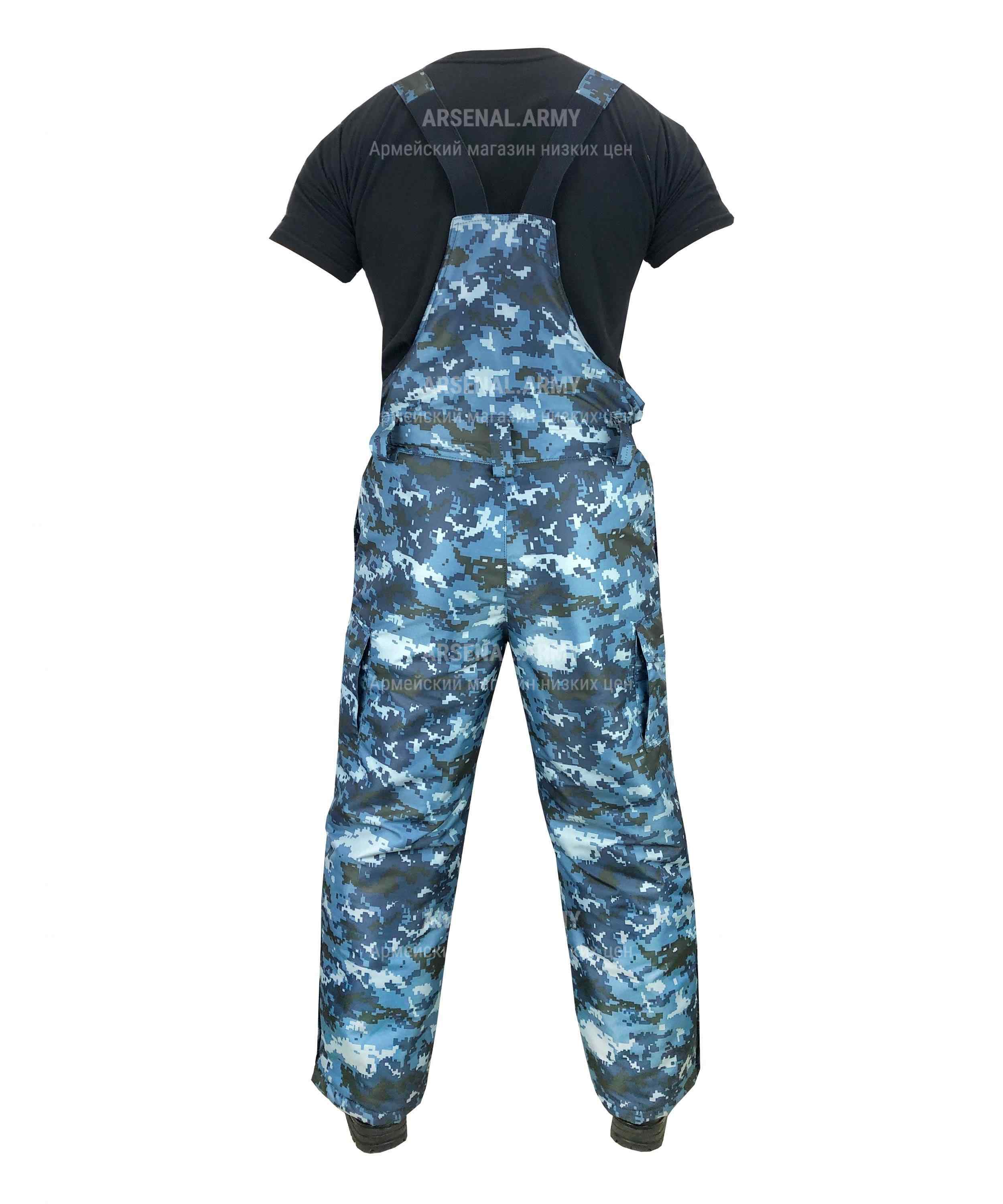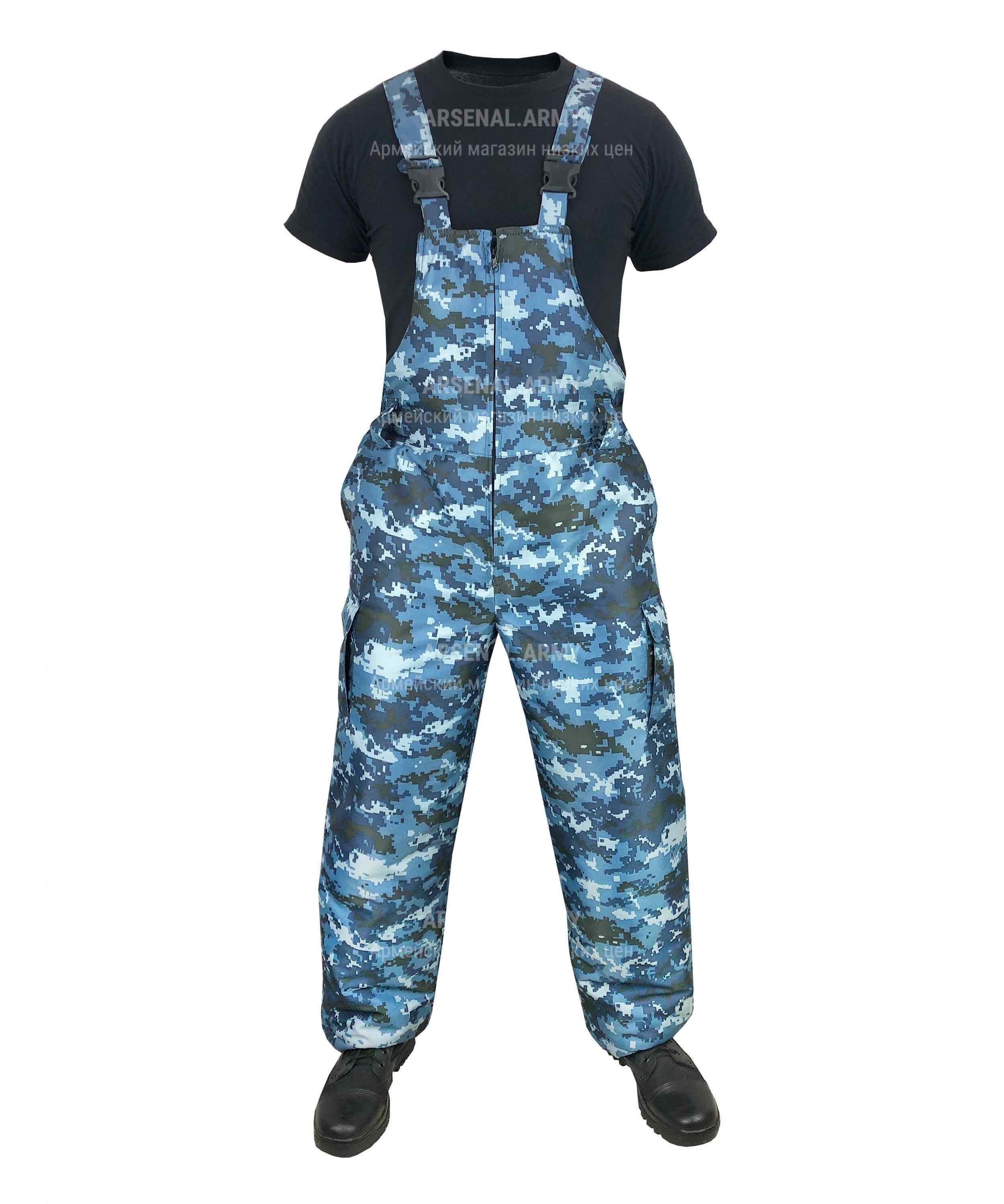 Карманы расположены в районе пояса по бокам: открытые для рук. Ещё пара - на липучке по бокам штанов. Крой прямой. Предусмотрены шлёвки для ремня, хотя комбинезон может обойтись и без него. Понизу штанин вшиты молнии для облегчения обувания.