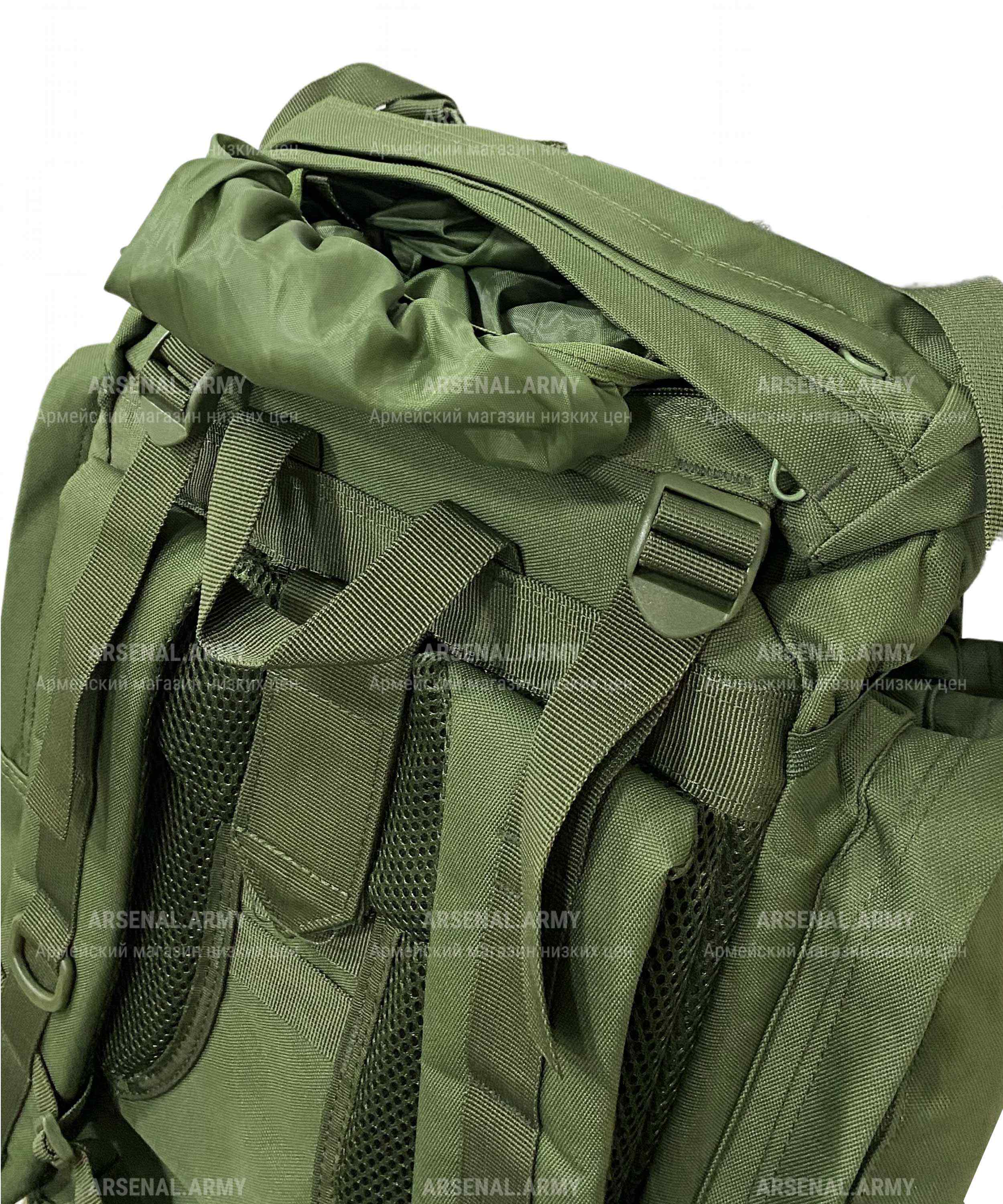 Рюкзак вместительностью 80 литров. Пошит из ткани оксфорд с влагоотталкивающей пропиткой. В спинку вставлен жесткий каркас, равномерно распределяющий нагрузку по спине.