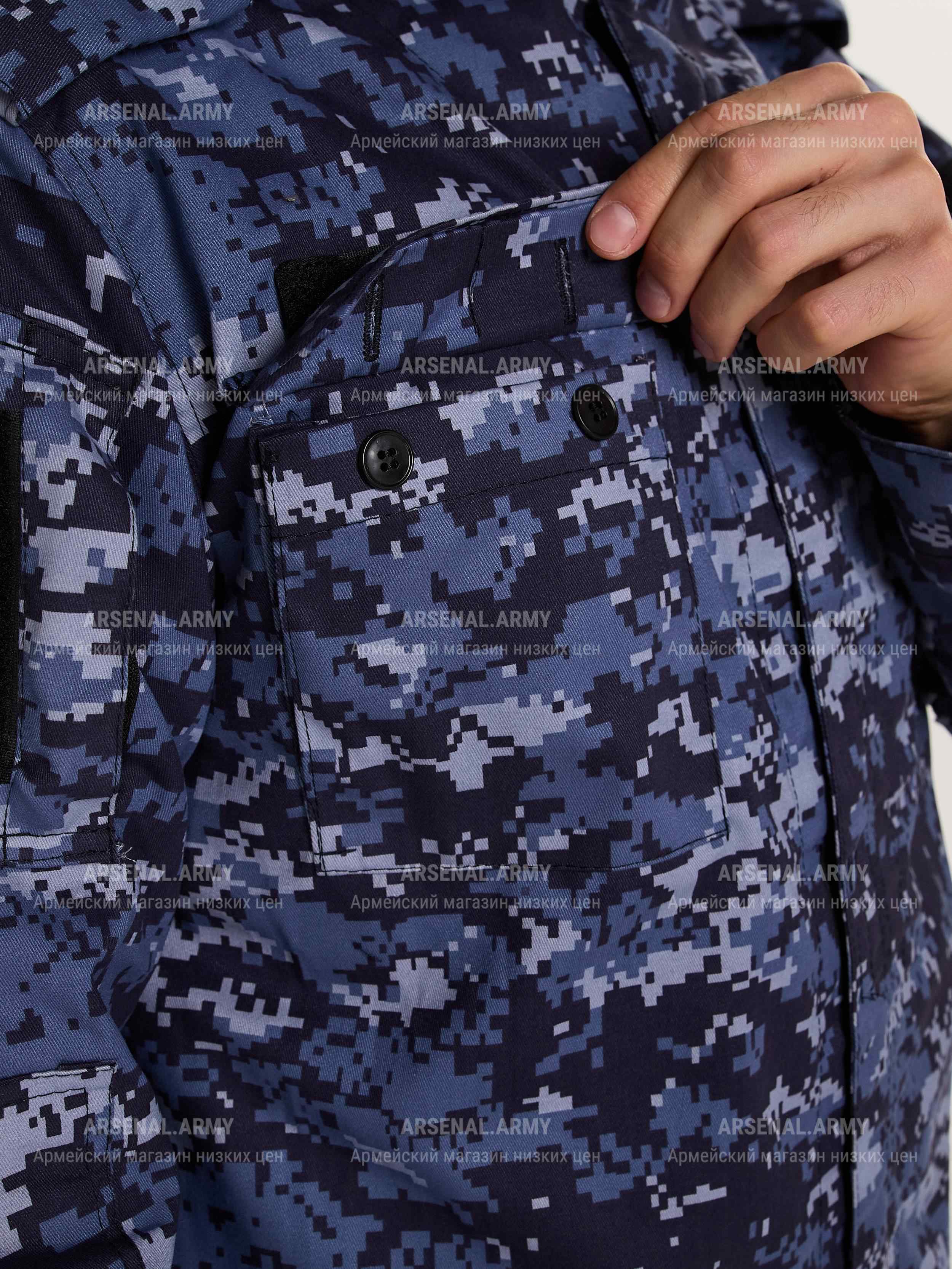 На рукавах также присутствуют карманы, но с липучками под шевроны. Манжеты регулируются на липучках. На спине предусмотрено крепление большой нашивки.
