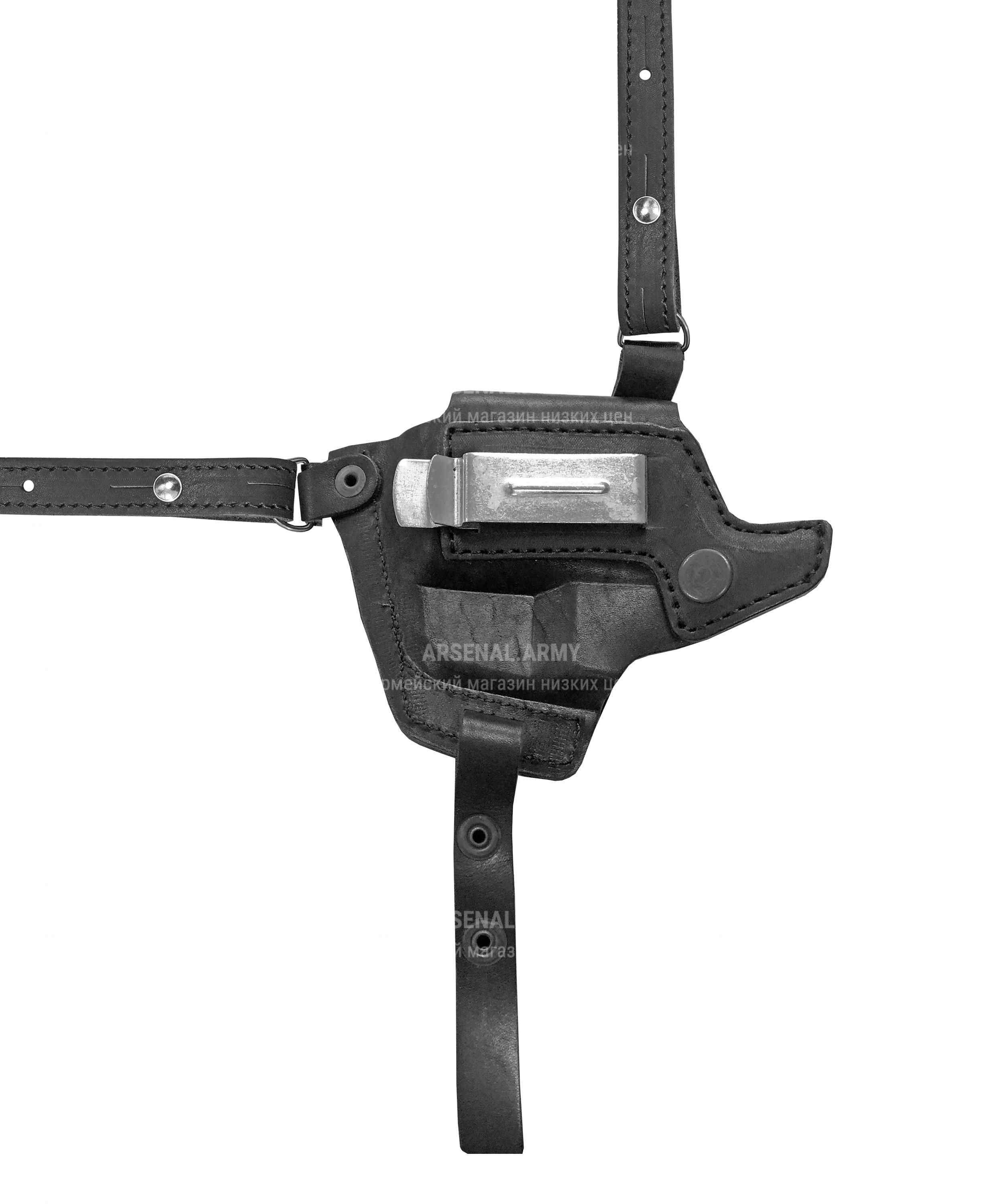 Кобура пошита из натуральной кожи и защёлкивается на кнопку. Надевается через руки, а фиксируется и носится на боку, что позволяет молниеносно выхватить травматик при необходимости. Также её можно прятать за поясом, благодаря специальной скобе. Кобура отцепляется от ремней.
