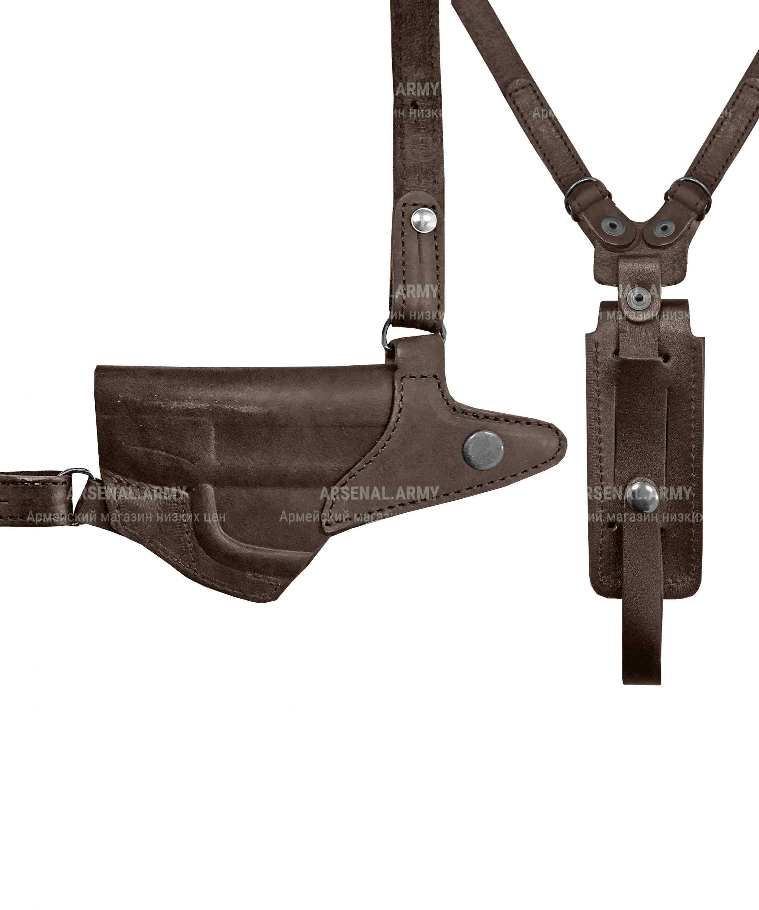 Надежная и удобная, проверенная временем модель оперативной наплечной кобуры под пистолет Макарова и одну запасную обойму для него.