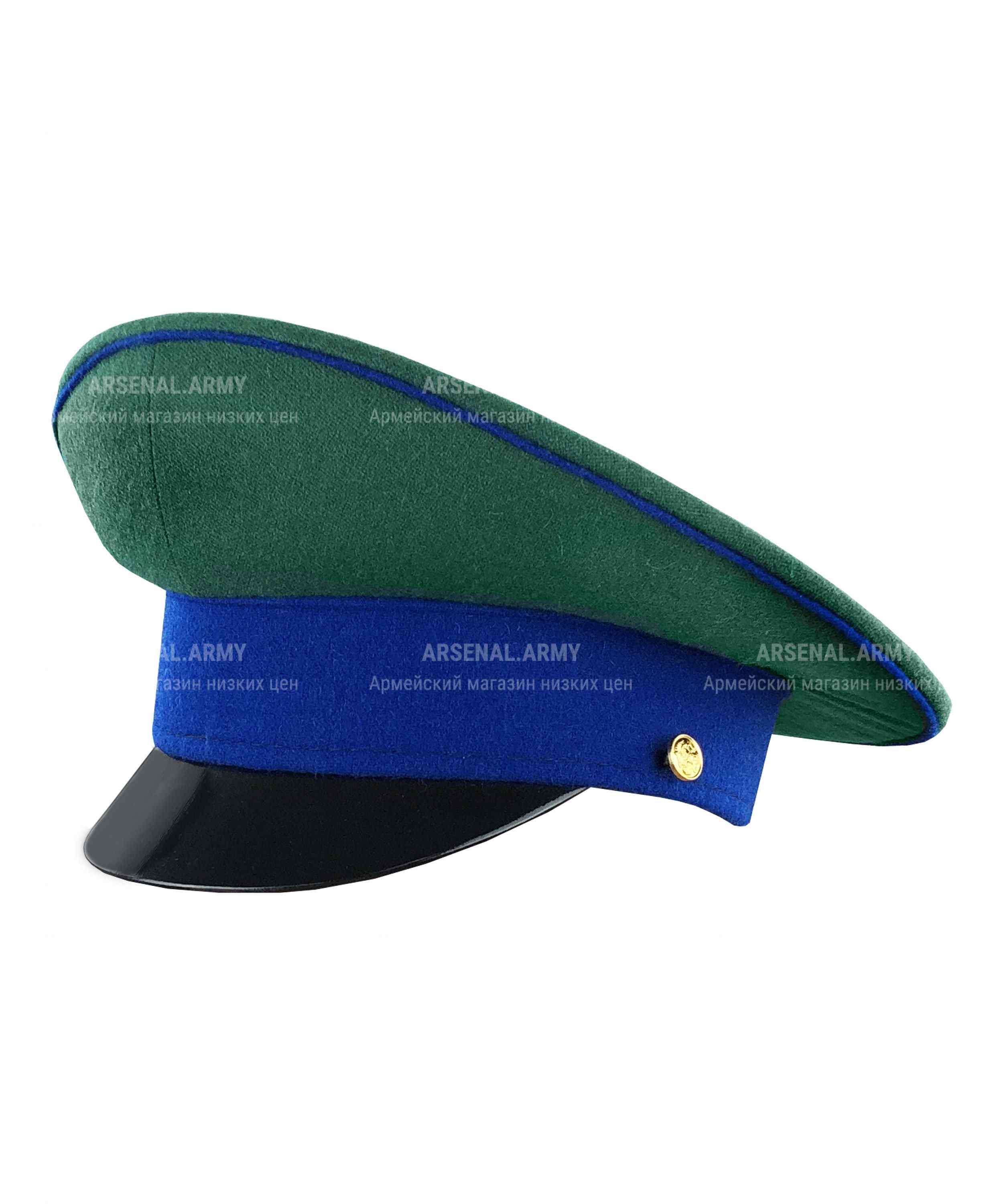 Фуражка пограничных войск выполнена из сочетания полиэстера и шерсти, что обеспечивает оптимальный баланс прочности и комфорта. Основной материал состоит из 60% полиэстера и 40% шерсти, что позволяет изделию сохранять форму и хорошо держать форму в ветреную погоду. Цвет изделия — зелёный, рассчитанный на летний сезон, что делает головной убор практичным для жарких дней, но он также сохраняет тепло в прохладную погоду за счёт шерстяной составляющей.