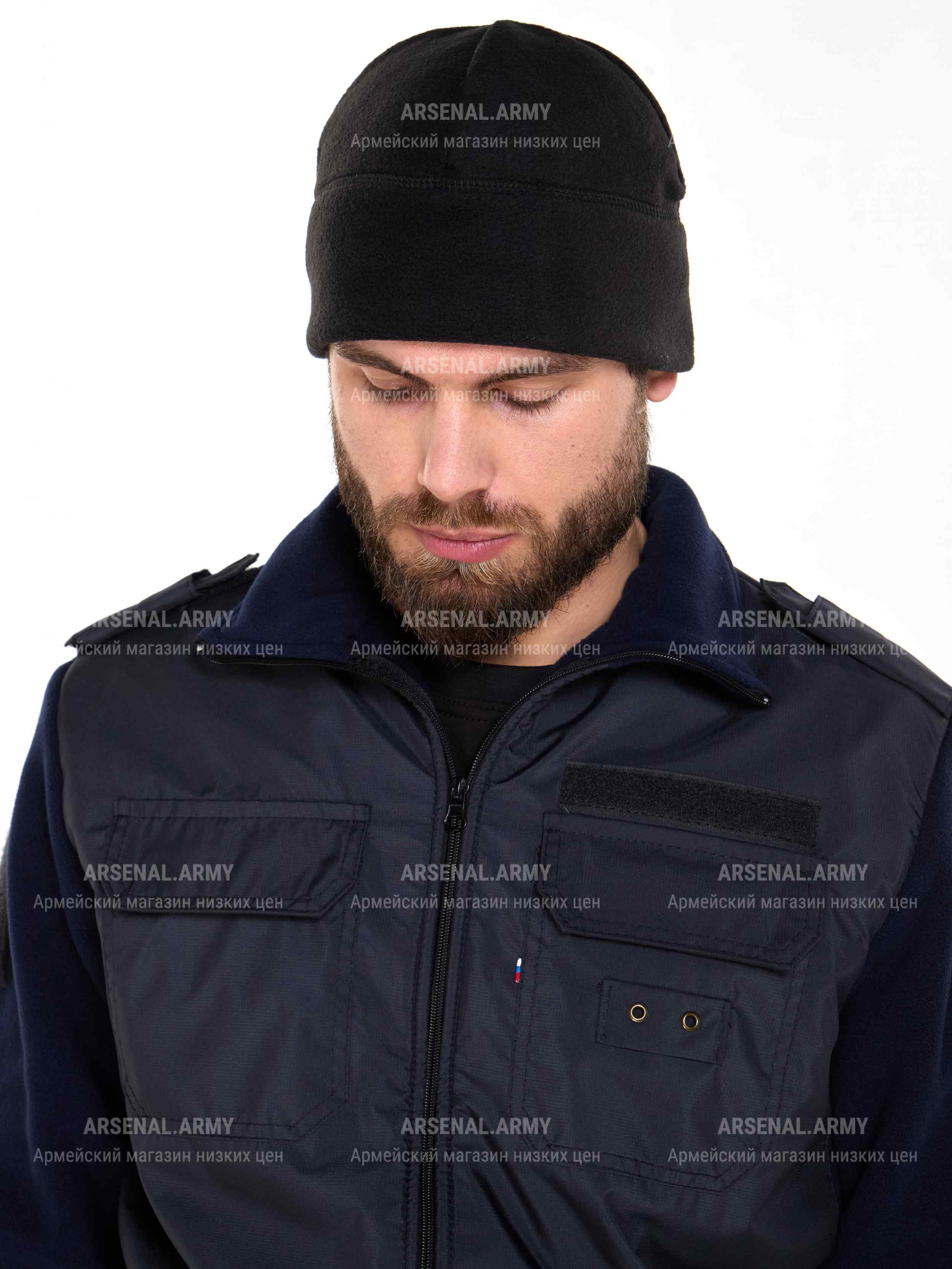 Шапка изготовлена из высококачественного флиса, обеспечивая отличную теплоизоляцию и комфорт в холодные дни. Черный цвет придает изделию стильный и универсальный вид, легко сочетающийся с различной одеждой.