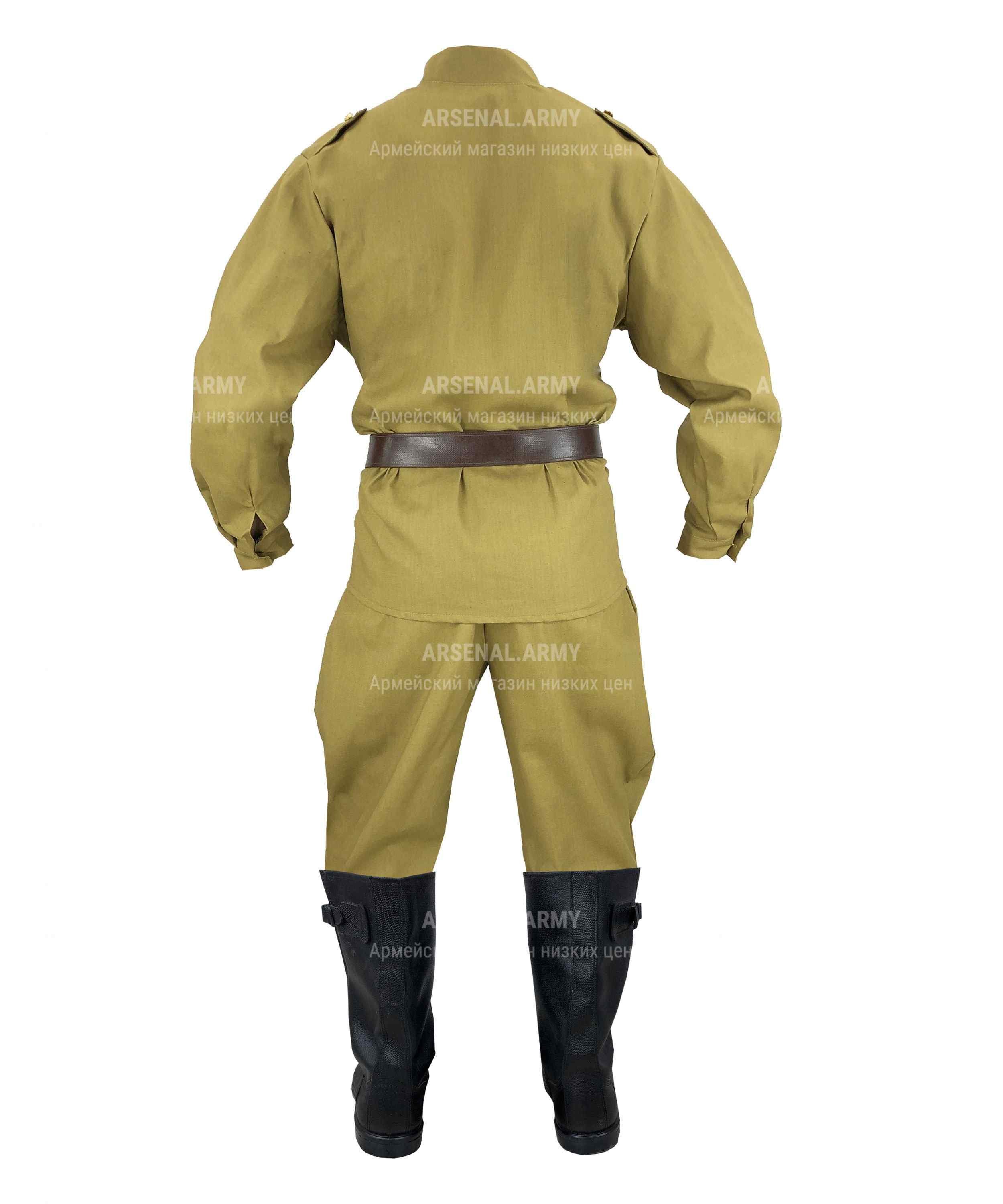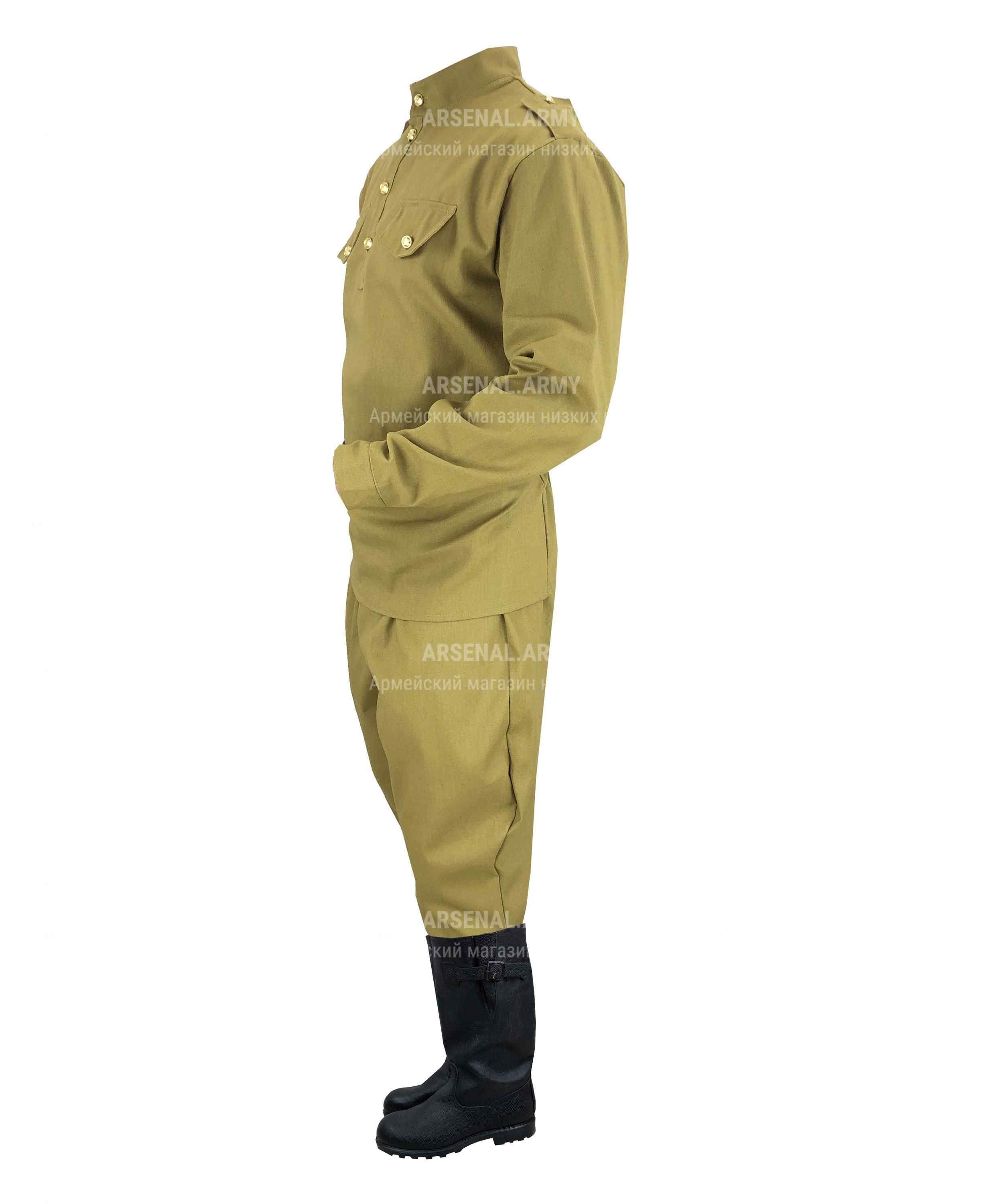 Костюм состоит из гимнастерки и брюк галифе. Цвет – песочный. На гимнастерке нашиты кнопочные карманы и воротник-стойка, фиксирующийся на 1 пуговицу. Гимнастёрка застёгивается на пуговицы до груди и снимается через голову. Манжеты рукавов также на пуговицах. На плечах предусмотрены шлёвки для погон.