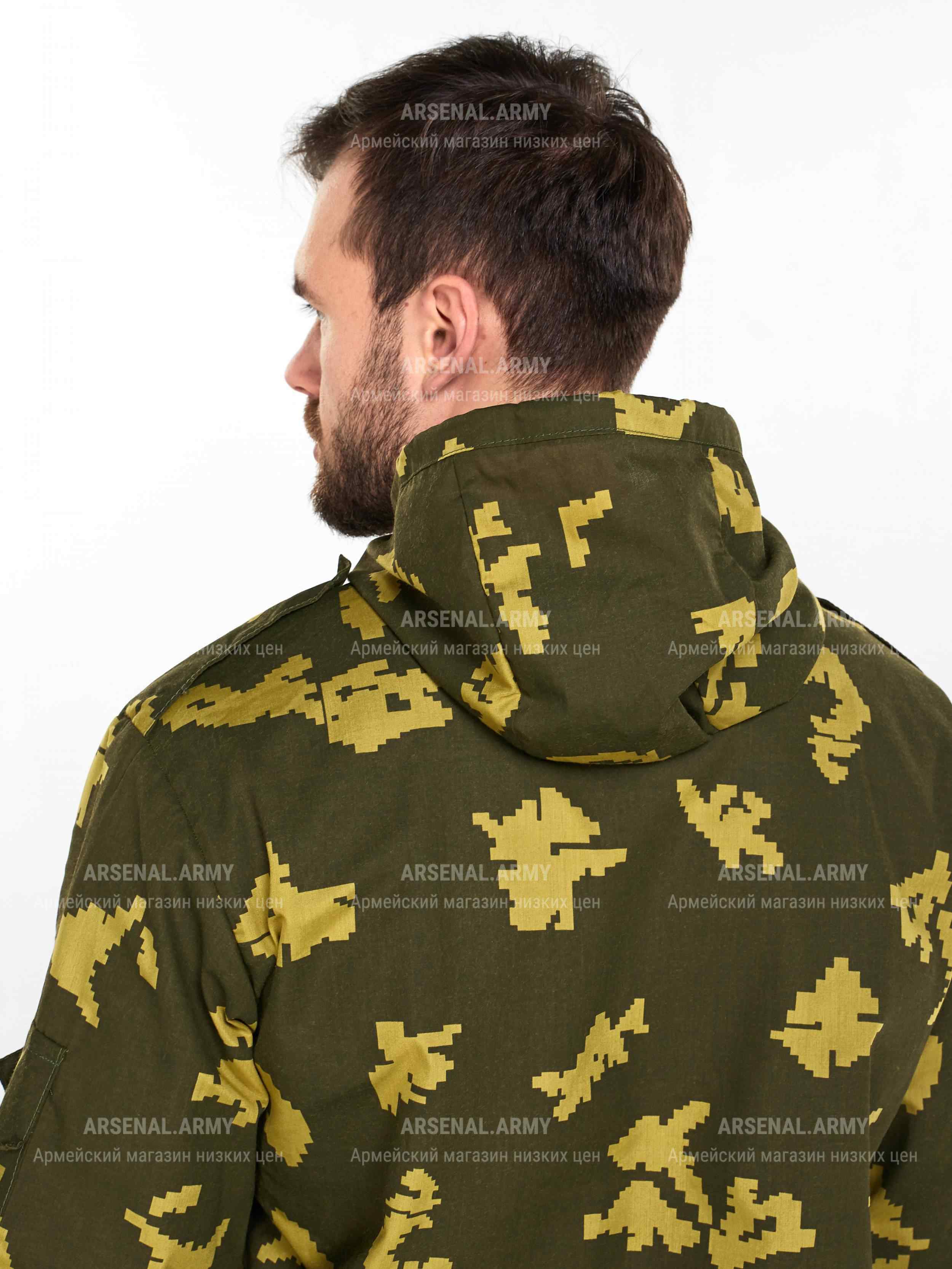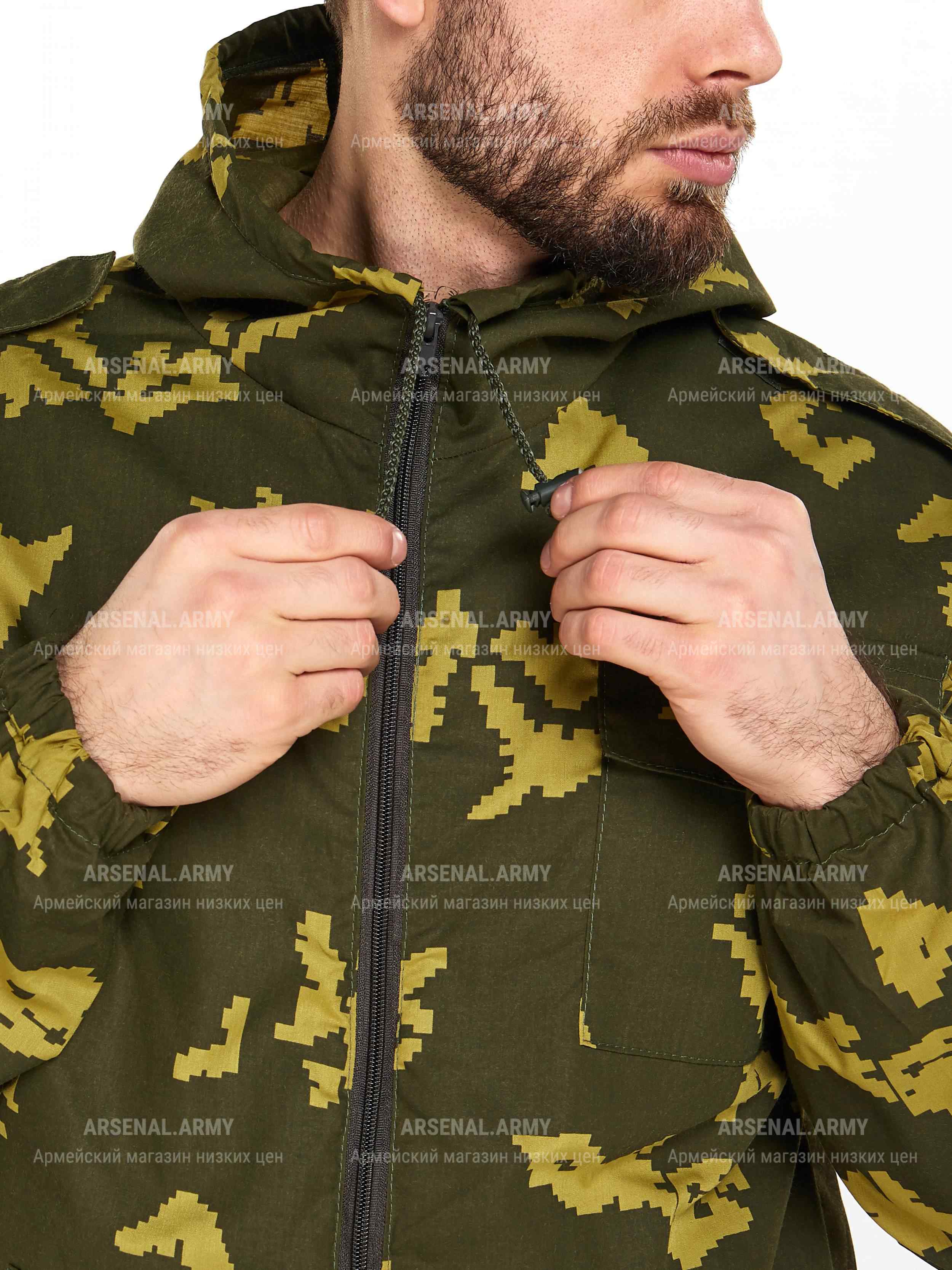 Куртка имеет прямой покрой, оснащена капюшоном и застегивается на молнию. На плечах присутствуют крепления для погон. Карманы расположены на левой груди, рукаве и по бокам куртки. Вшитая снизу резинка подгоняет одежду по талии владельца и препятствует задуванию холодного воздуха.
