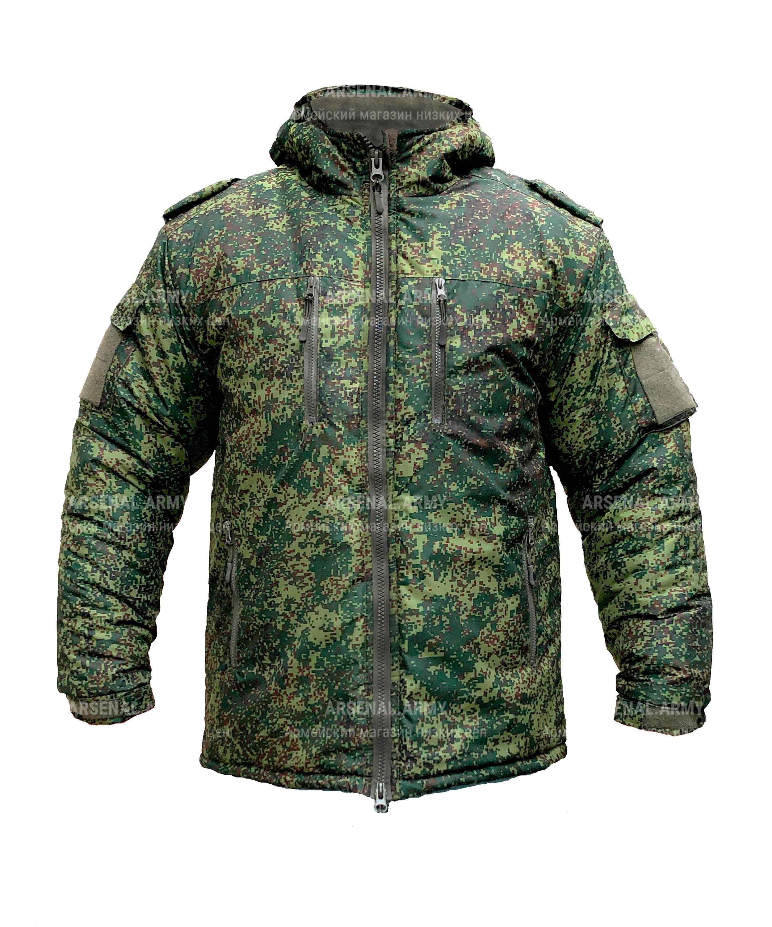 Парные карманы на груди и животе застёгиваются вертикально. Карманы на рукавах закрываются клапанами на липучке. На них есть патчи под шевроны. Манжеты утягиваются липучкой, есть фальшпогоны.