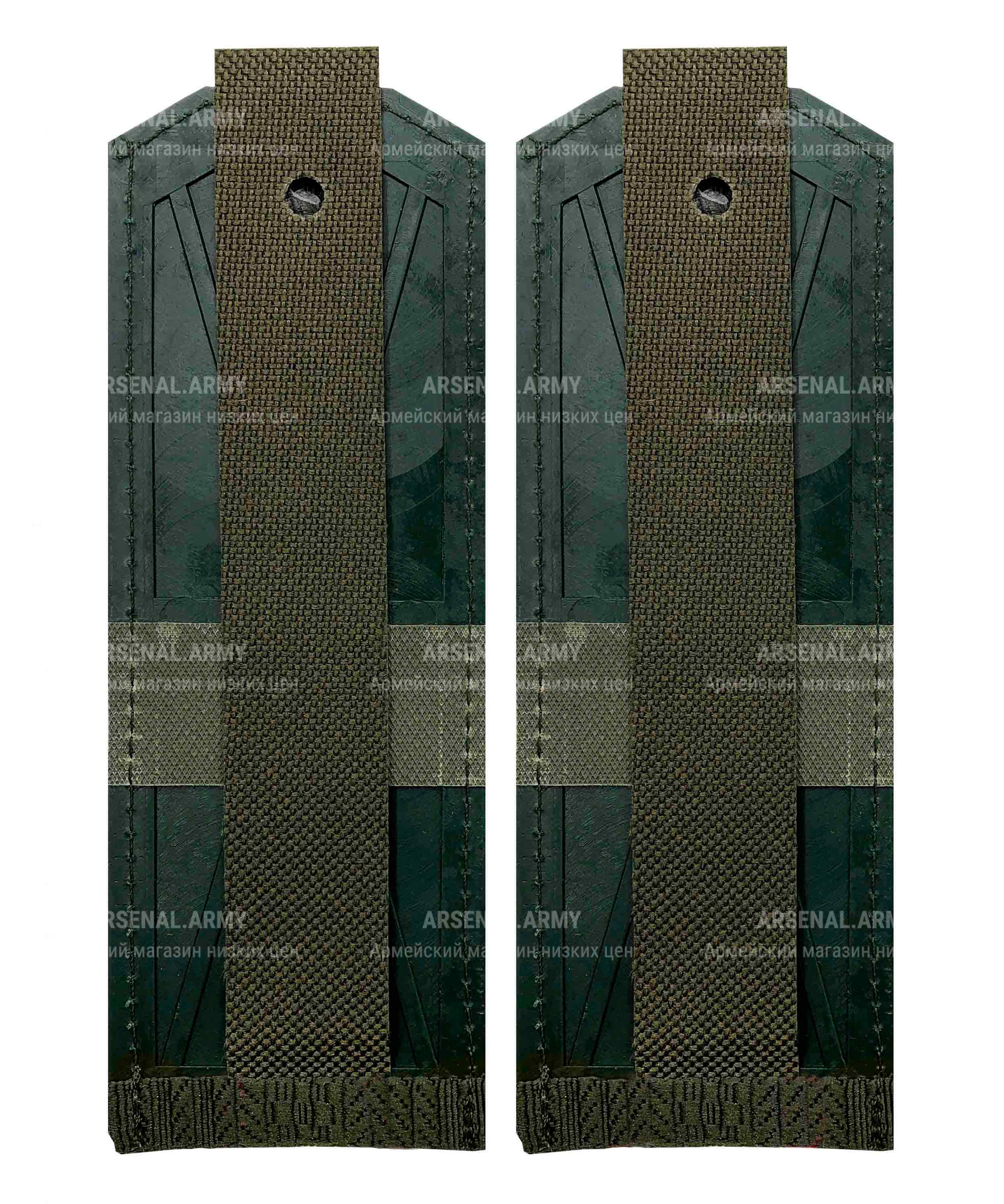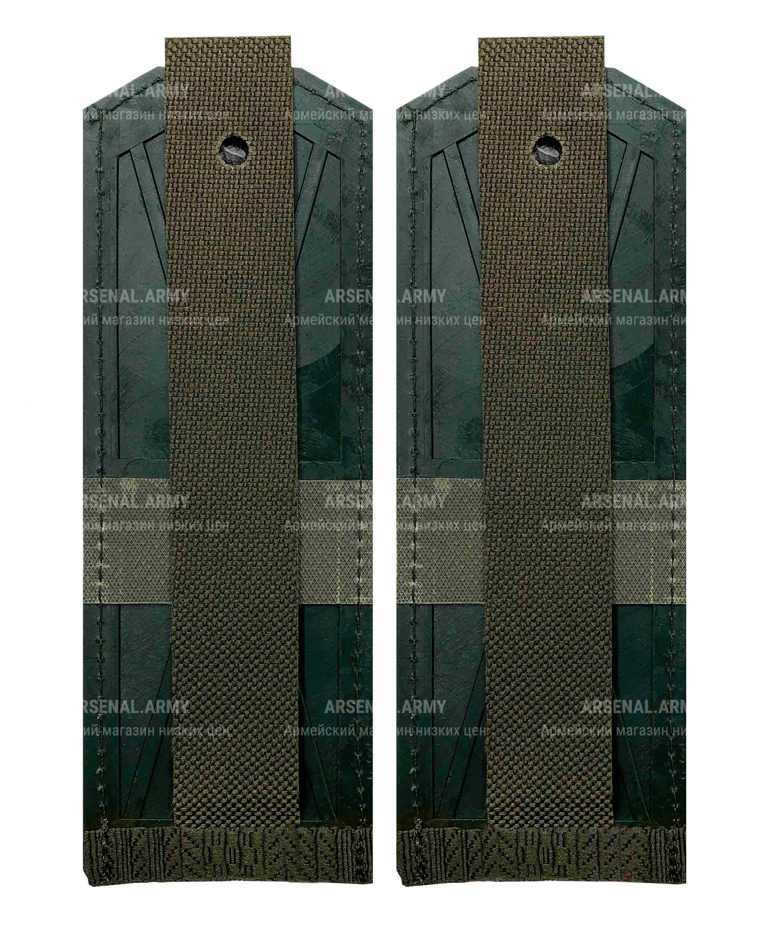 Погоны имеют оливковый цвет, что придает им строгий вид. Размеры погон составляют 5 x 13.5 см, что позволяет легко подобрать подходящий размер для вашего кителя.