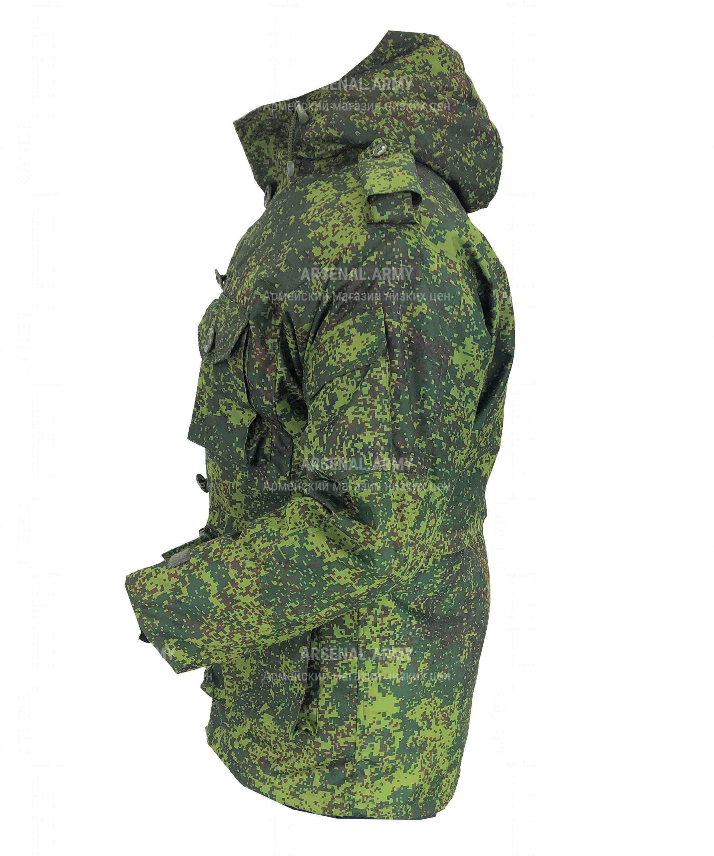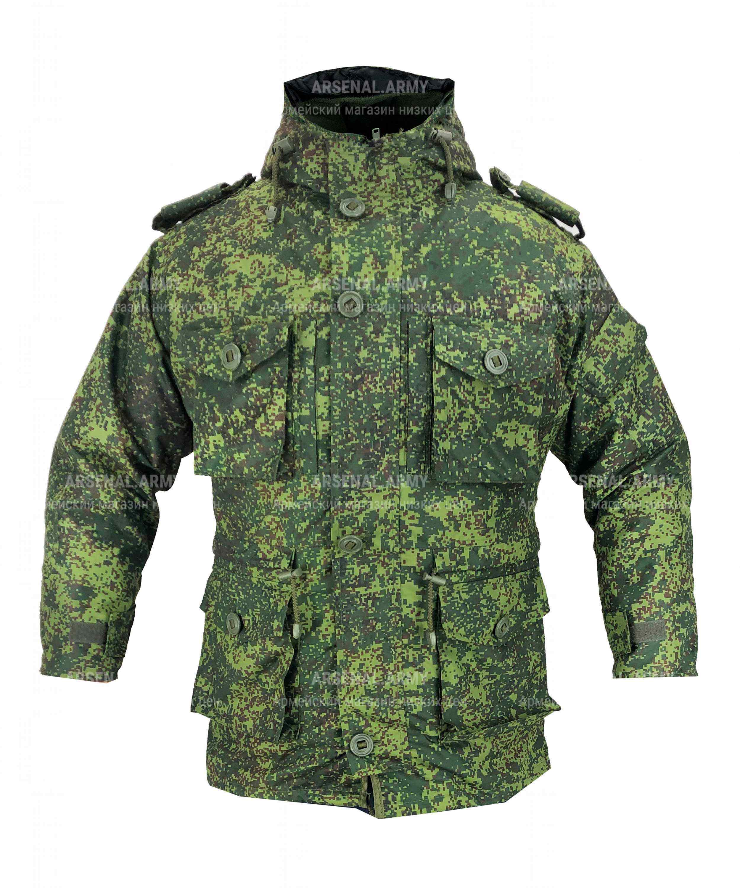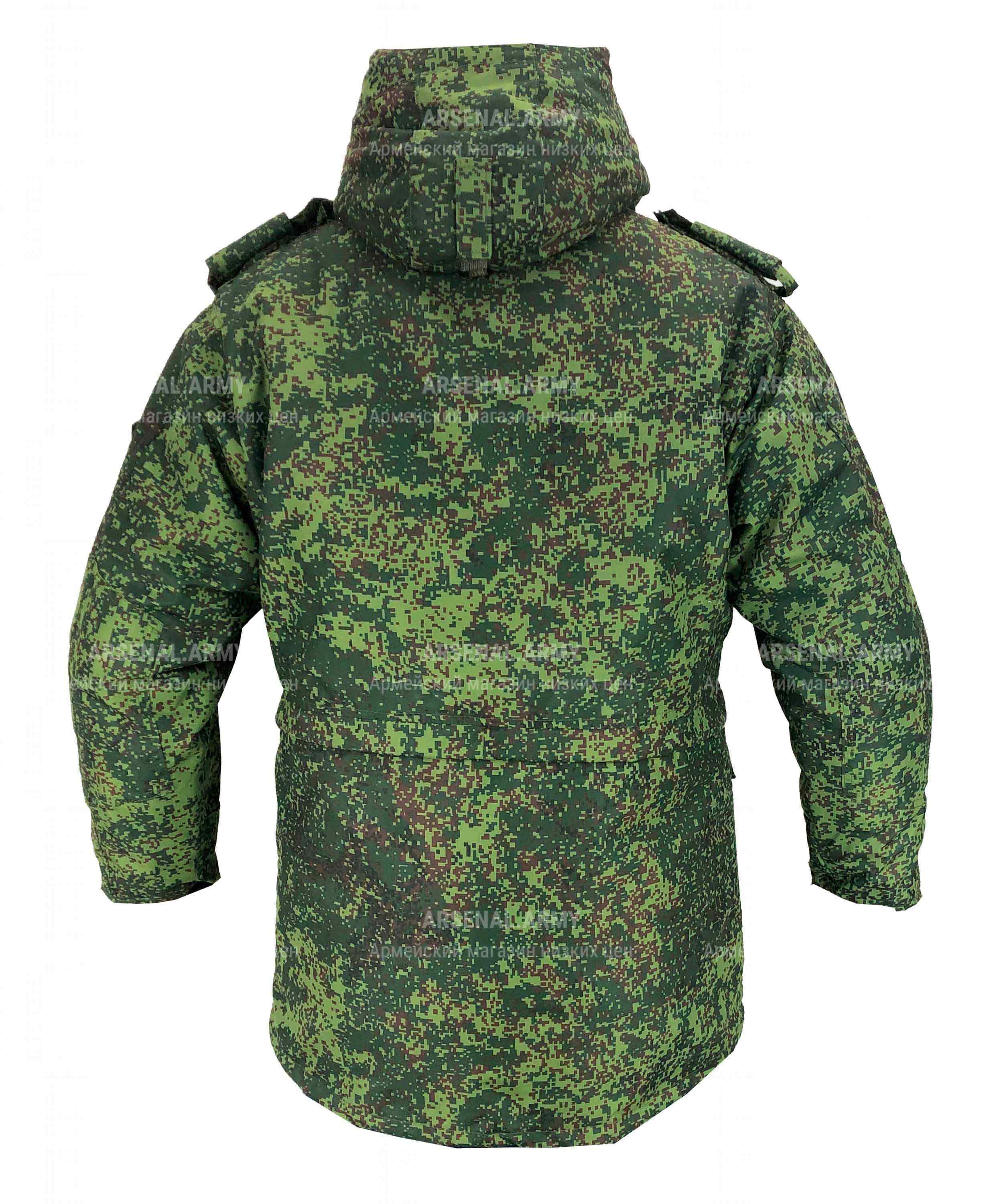 Куртка длинная, спускающаяся ниже пояса. Покрой прямой, свободный. Материал изготовления – прочная износостойкая ткань (100% Полиэстер). Подстежка, капюшон и другие особенности гарантируют, что в этой куртке тепло будет в любую погоду. Расцветка – армейский пиксель.